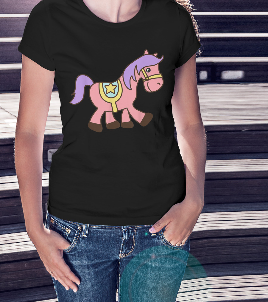Happy Pink Pony With Purple Mane And Star Saddle T-Shirt