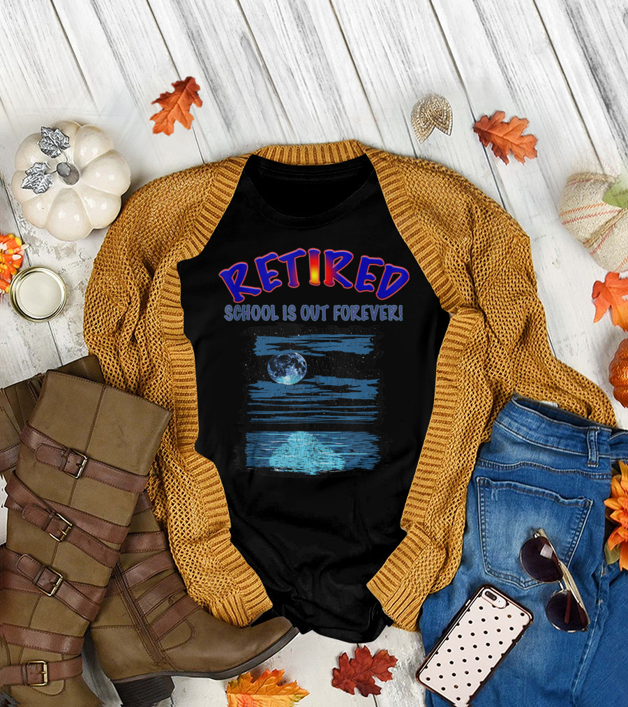 RETIRED SCHOOL IS OUT FOREVER Moonlit Ocean Retirement Party T-Shirt