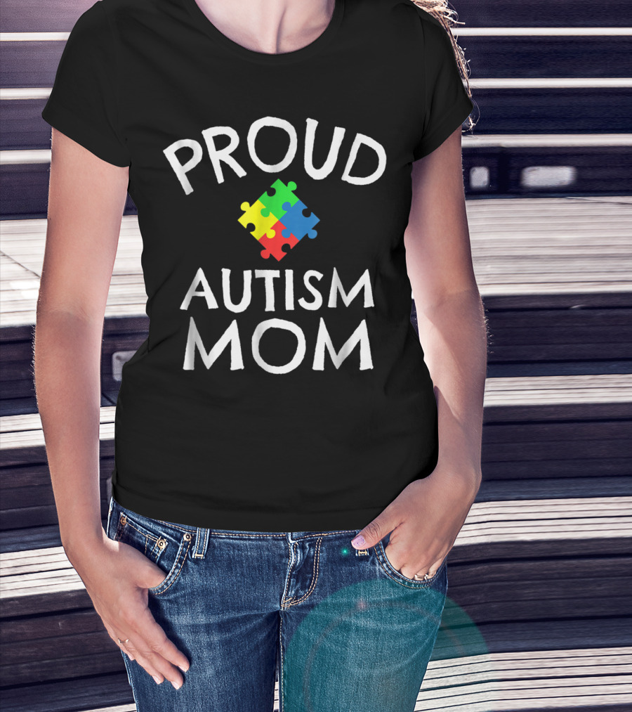 Proud Autism Mom Colorful Puzzle Autism Awareness T-Shirt