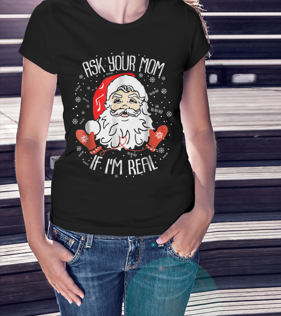 Ask Your Mom If I'm Real Santa Claus Ho Ho Ho Snowflakes Christmas Image T-Shirt