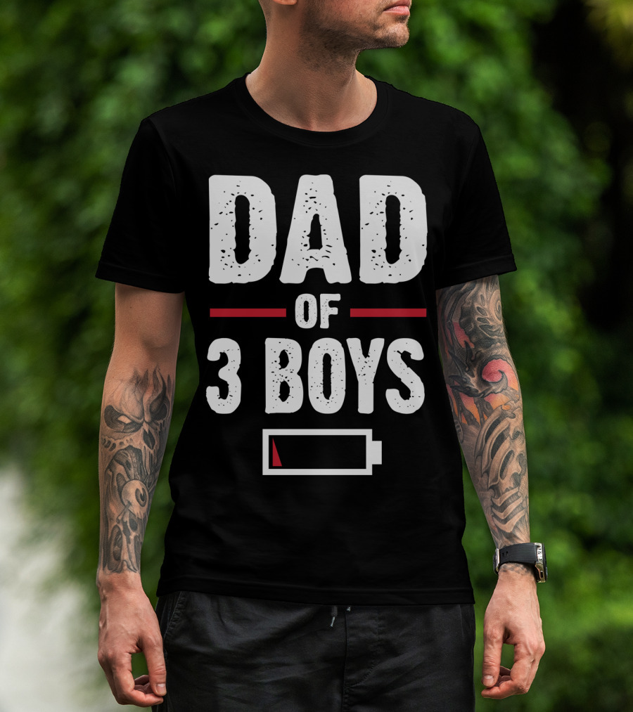 The Dad of Three Boys Low Battery T-shirt is designed for everyday wear and a consistent fit. Fabric is pre-shrunk ring-spun cotton with durable stitching. See the size chart below for exact measurements.