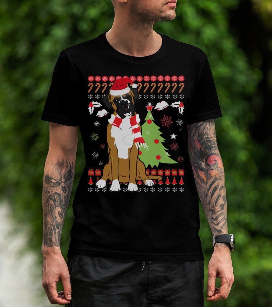 Boxer Dog Christmas Tree Ugly Christmas Holiday Boxer T-Shirt