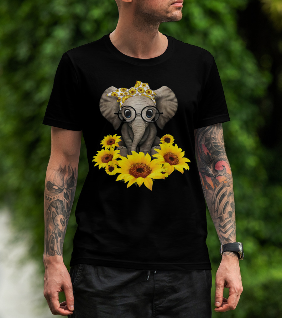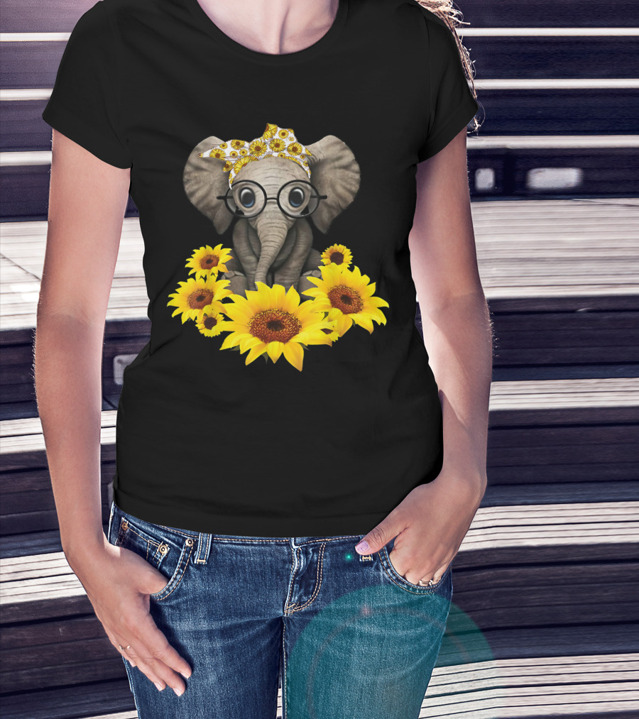 Sunflower Elephant For Woman Who Loves Elephant With Glasses And Floral Headband T-Shirt