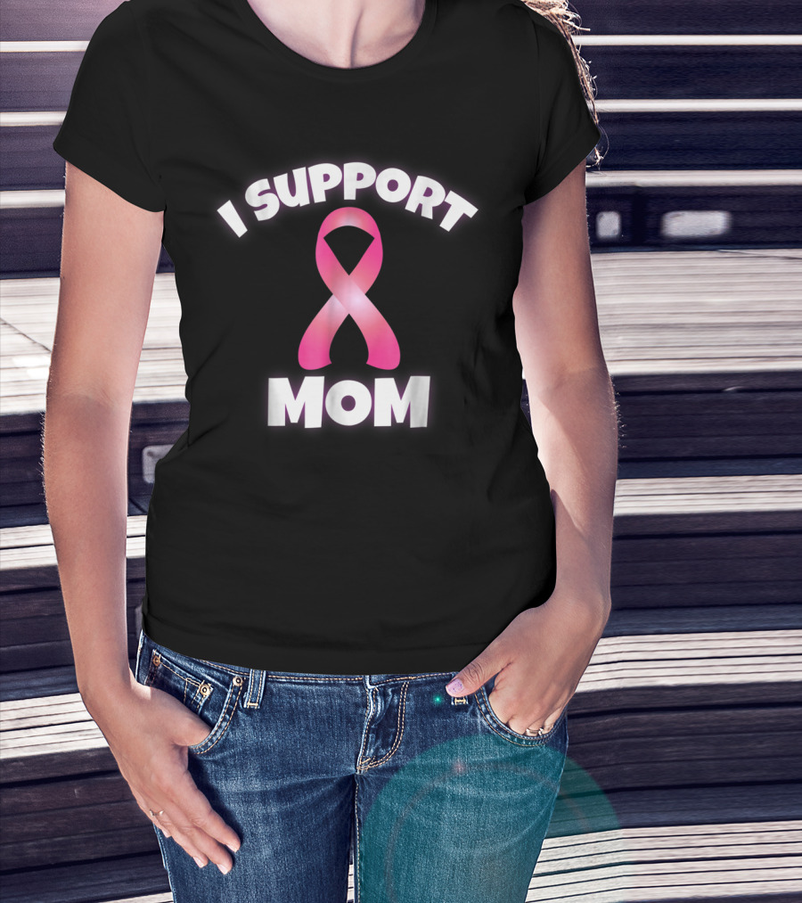 I Support Mom Breast Cancer Awareness Pink T-Shirt