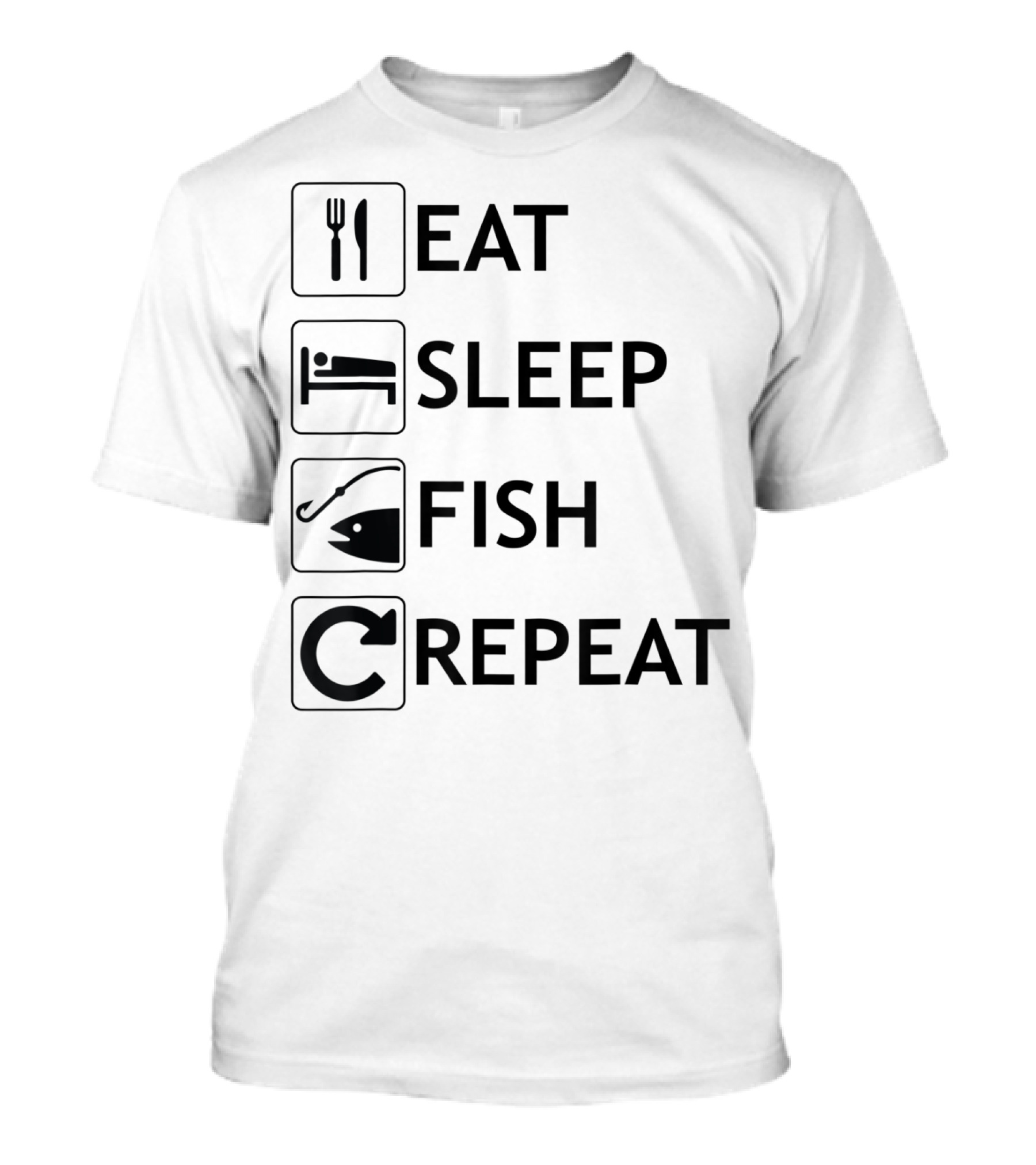 The Eat Sleep Fish Repeat Funny Fishing Iconic Routine T-shirt is designed for everyday wear and a consistent fit. Fabric is pre-shrunk ring-spun cotton with durable stitching. See the size chart below for exact measurements.