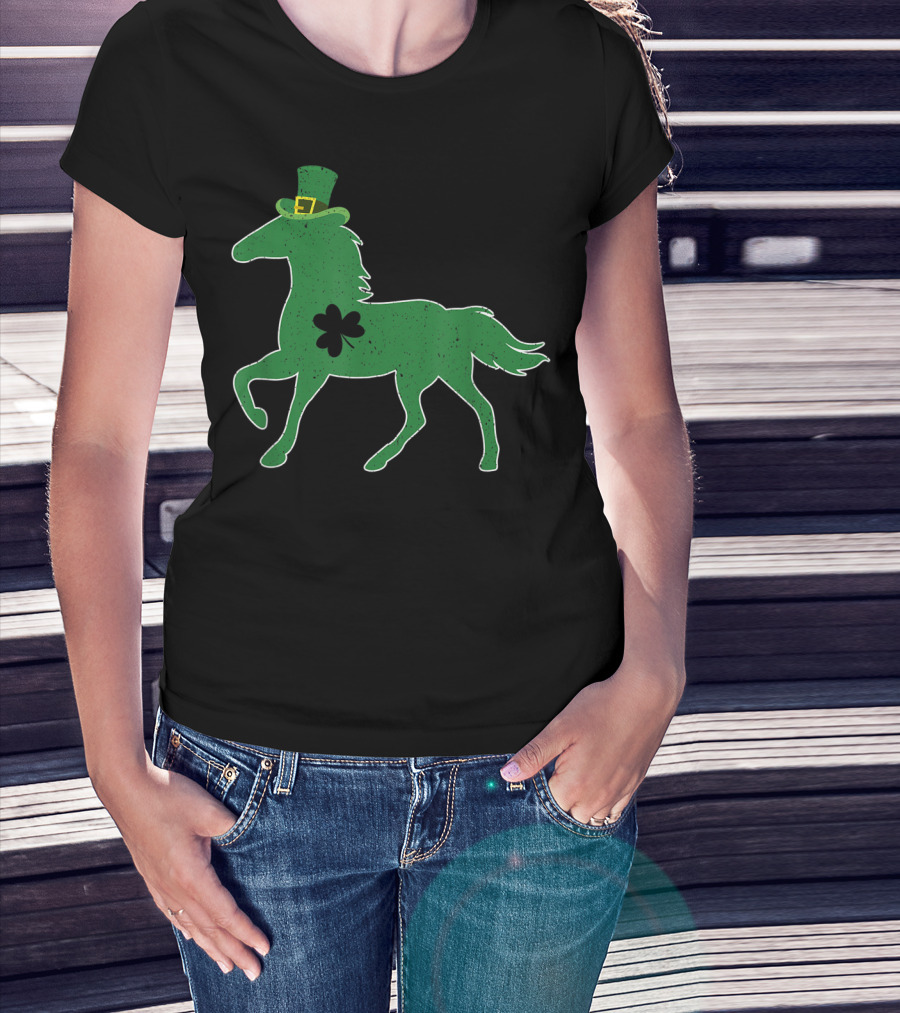 Funny Green Horse With Shamrock St Patrick's Day T-Shirt
