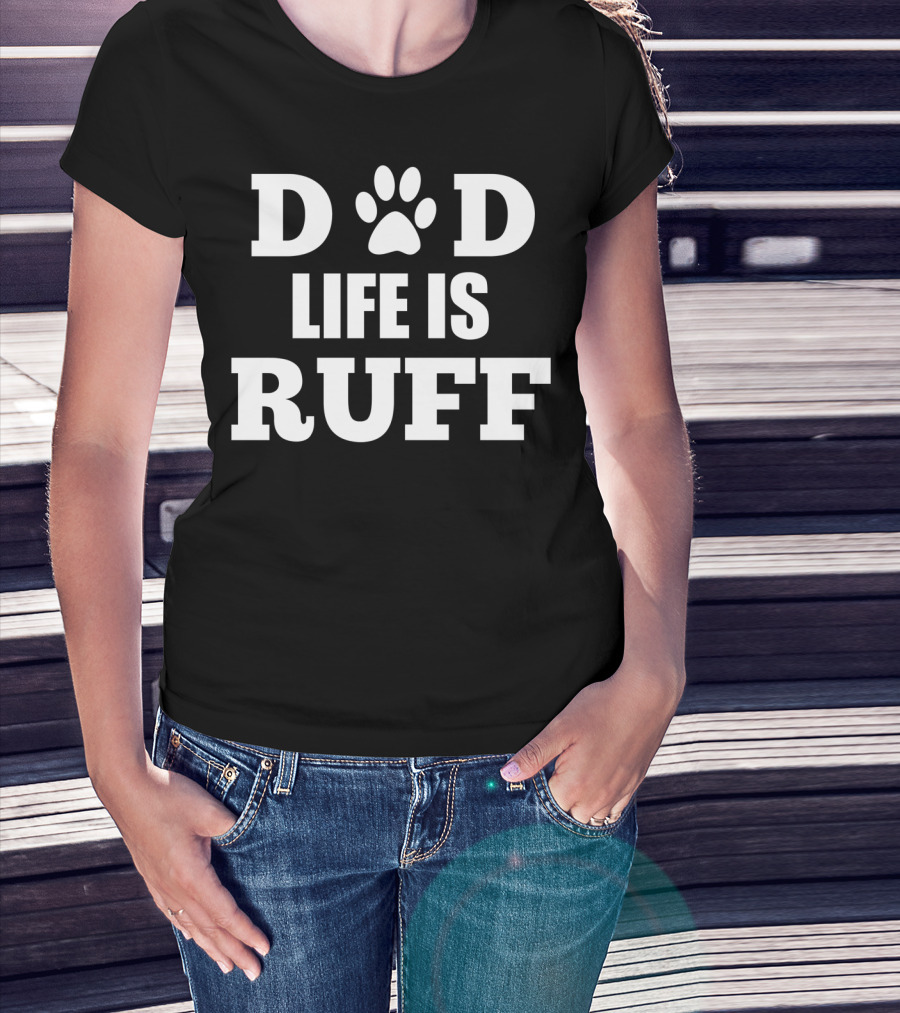 Dad Life Is Ruff Mens Funny Dog Paw Print Humor T-Shirt