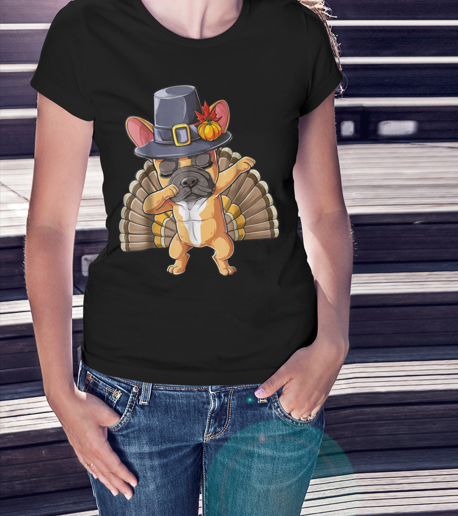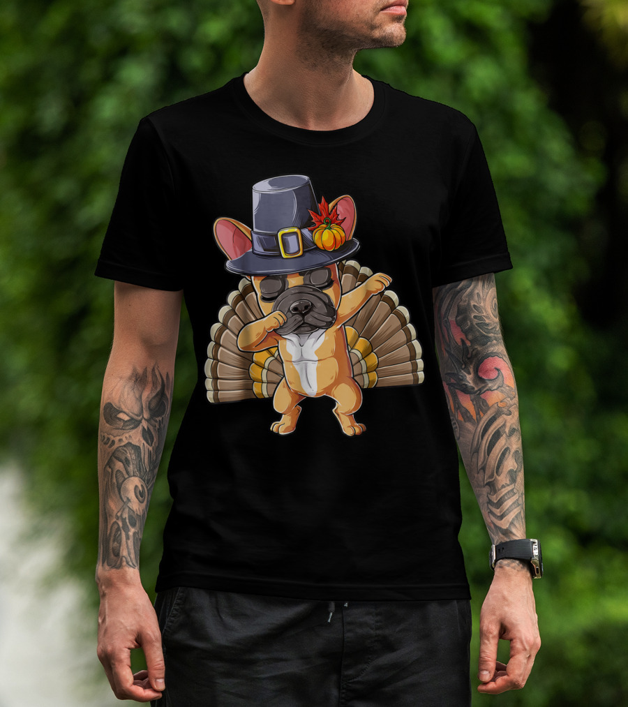 Thanksgiving Dabbing French Bulldog Pilgrim Hat Turkey Tail T-Shirt