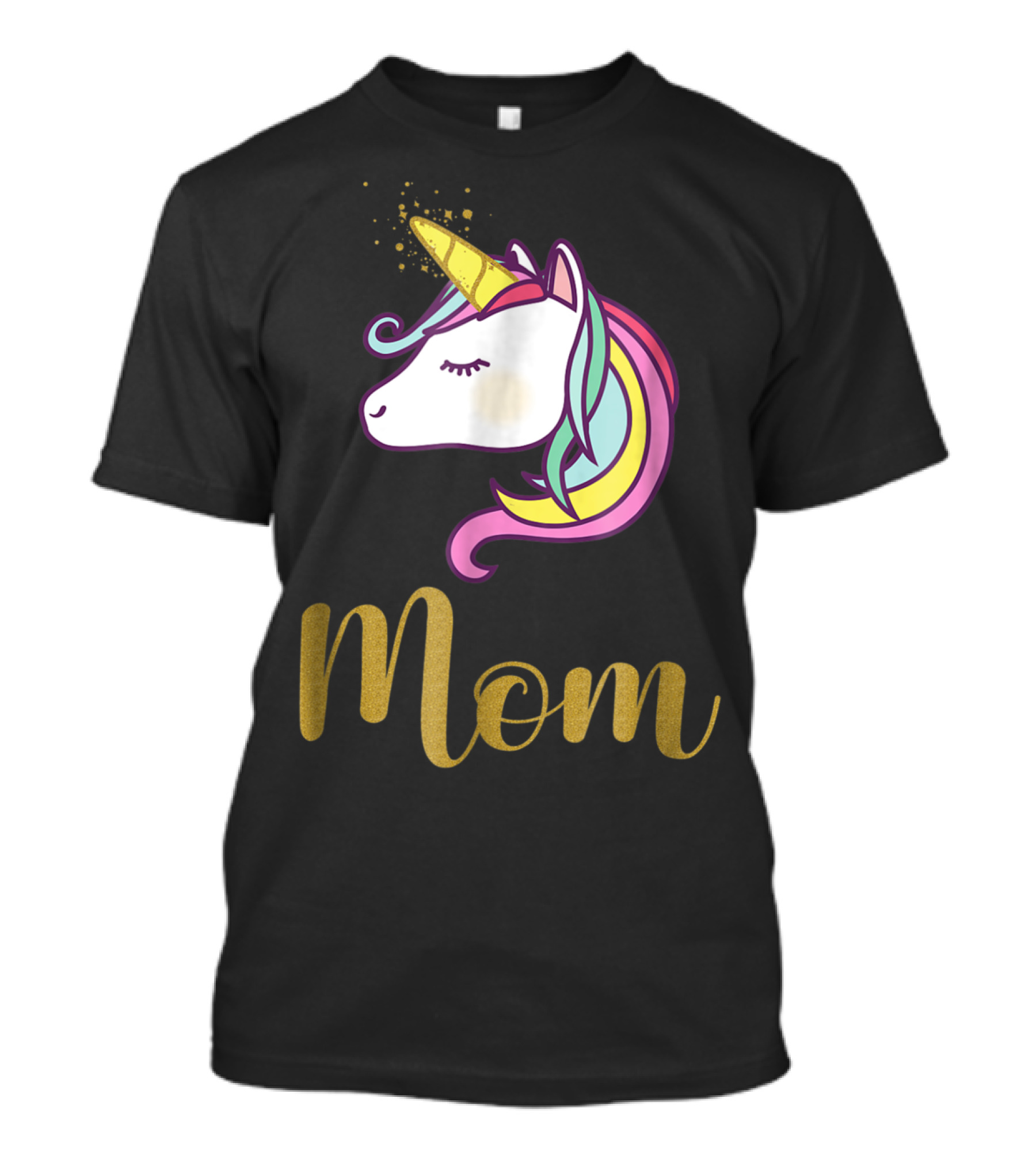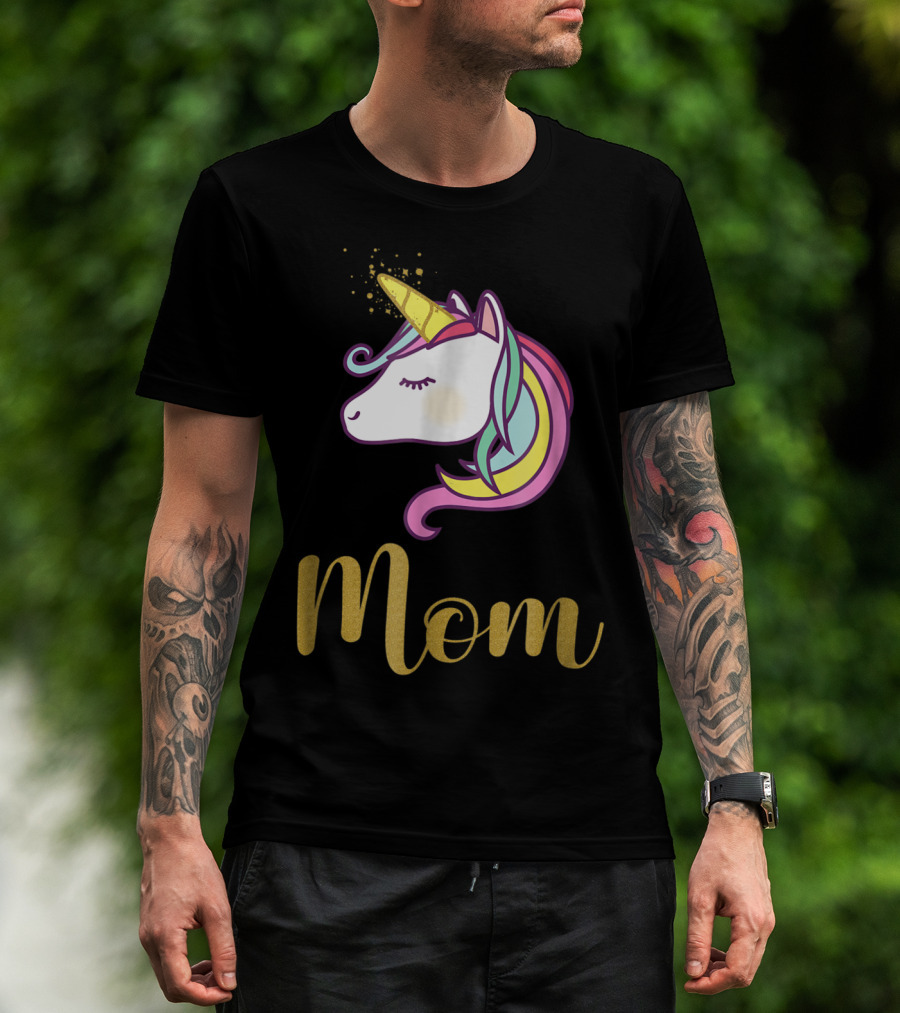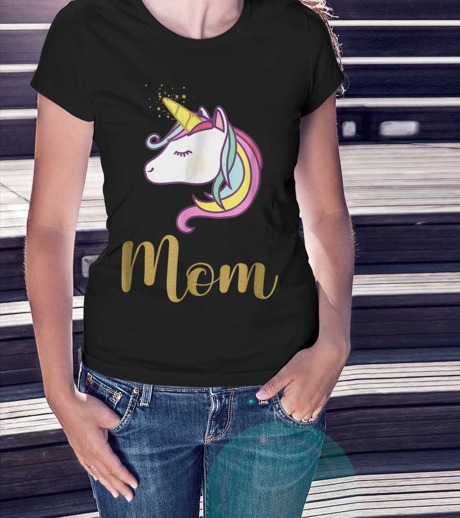 Unicorn Mom Of The Birthday Girl Rainbow Mane Gold Horn T-Shirt