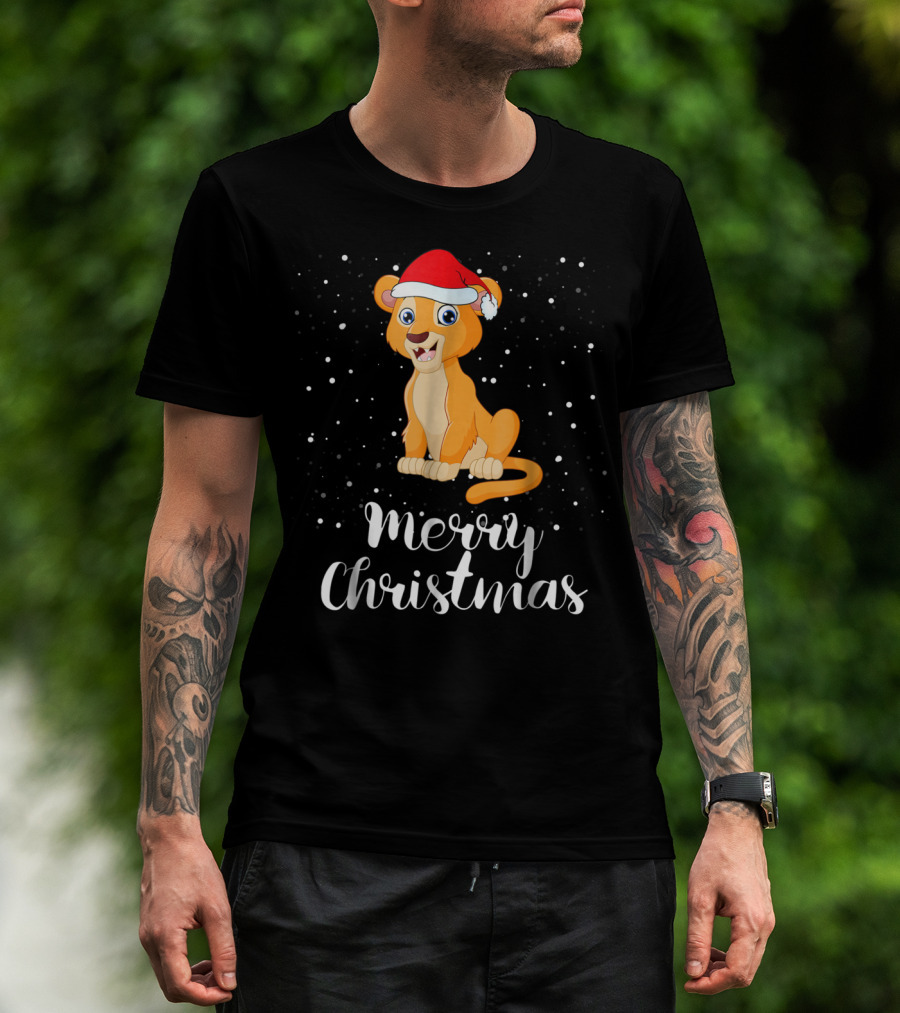 Lioness Merry Christmas Matching Family Group Santa Hat Snowfall T-Shirt