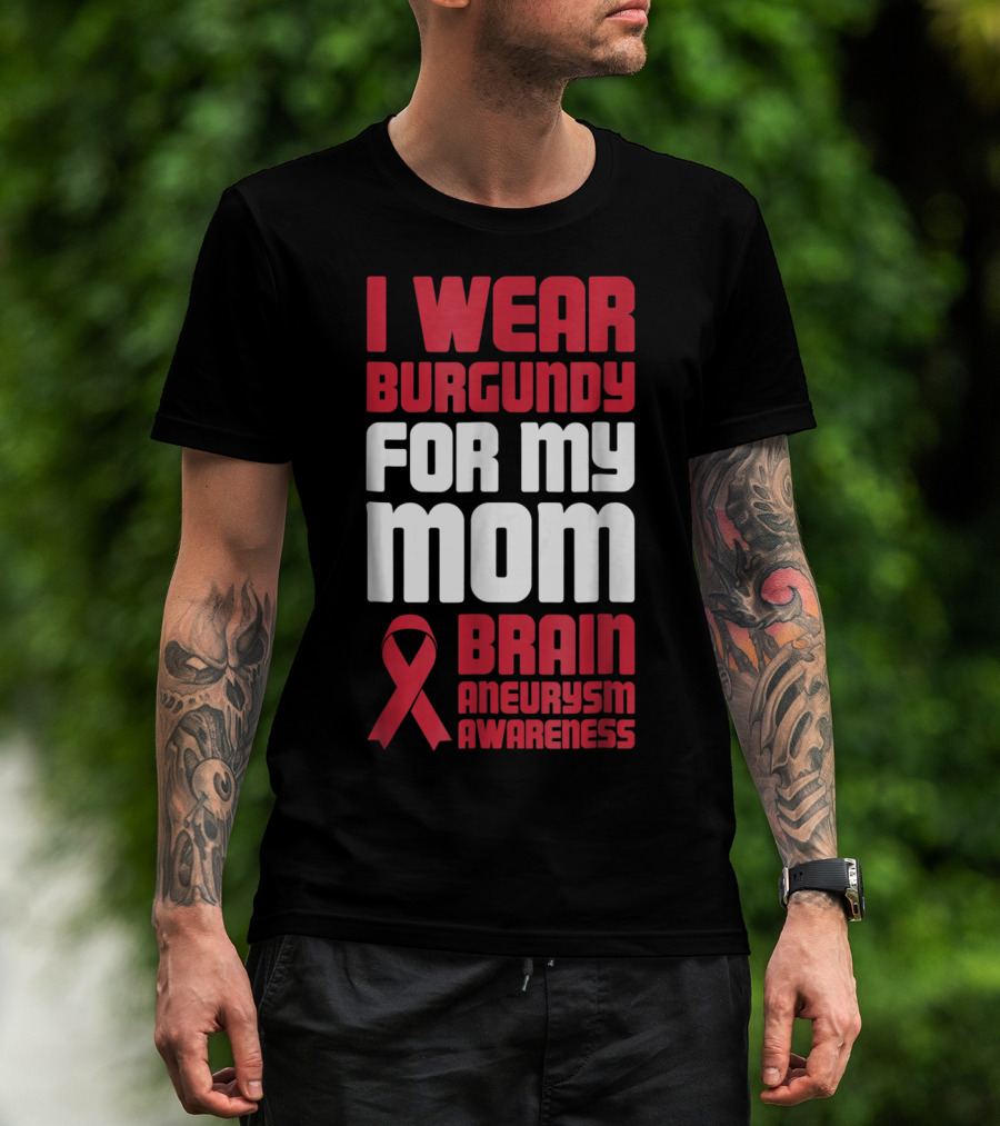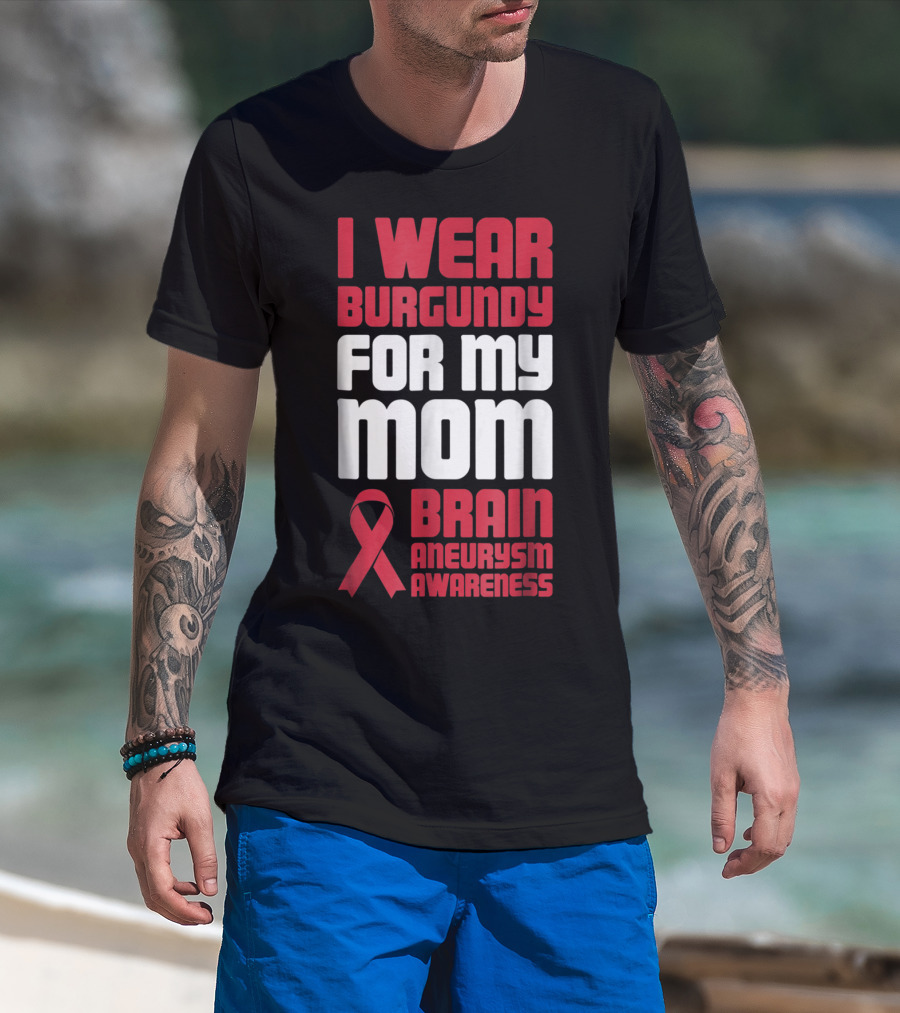I Wear Burgundy For My Mom Brain Aneurysm Awareness T-Shirt