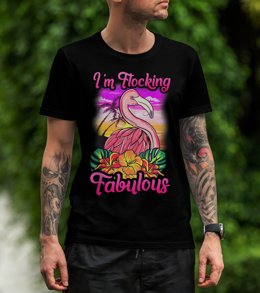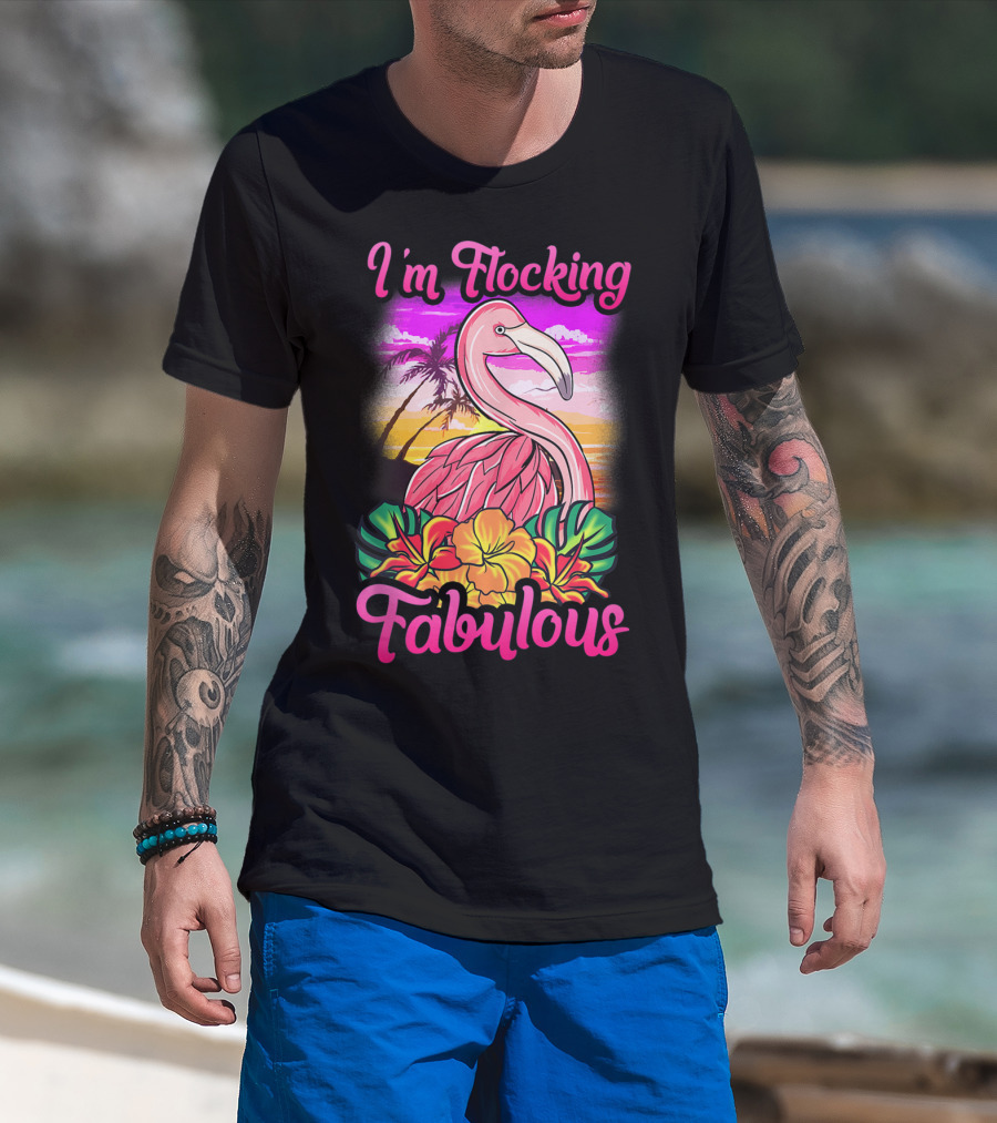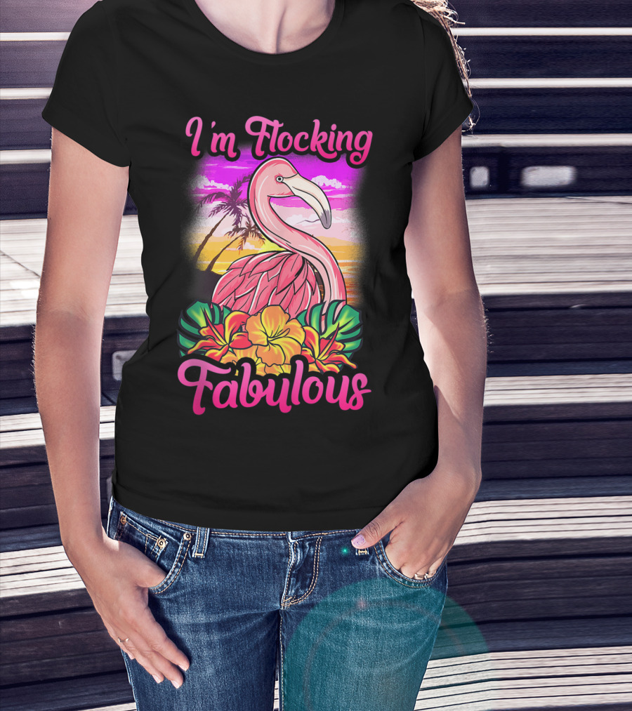 I'm Flocking Fabulous Pink Flamingo Tropical Sunset T-Shirt