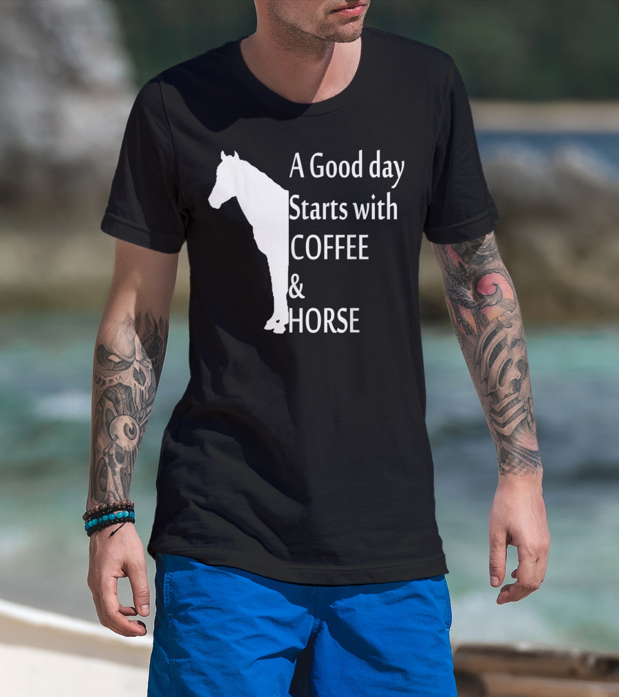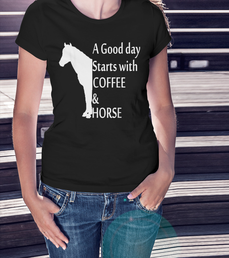 A Good Day Starts With Coffee And Horse Funny Orange Horse Lover T-Shirt