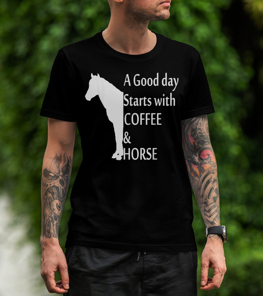 The A Good Day Starts with Coffee and Horse Funny Orange Horse Lover T-shirt is designed for everyday wear and a consistent fit. Fabric is pre-shrunk ring-spun cotton with durable stitching. See the size chart below for exact measurements.