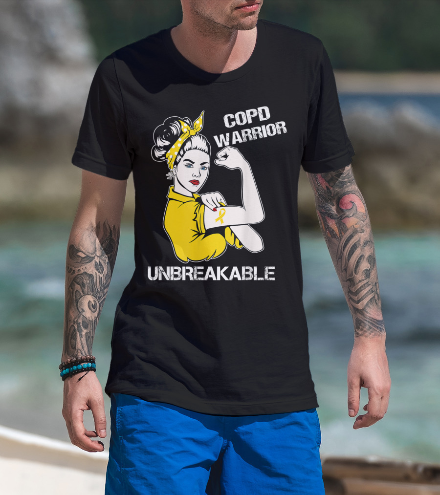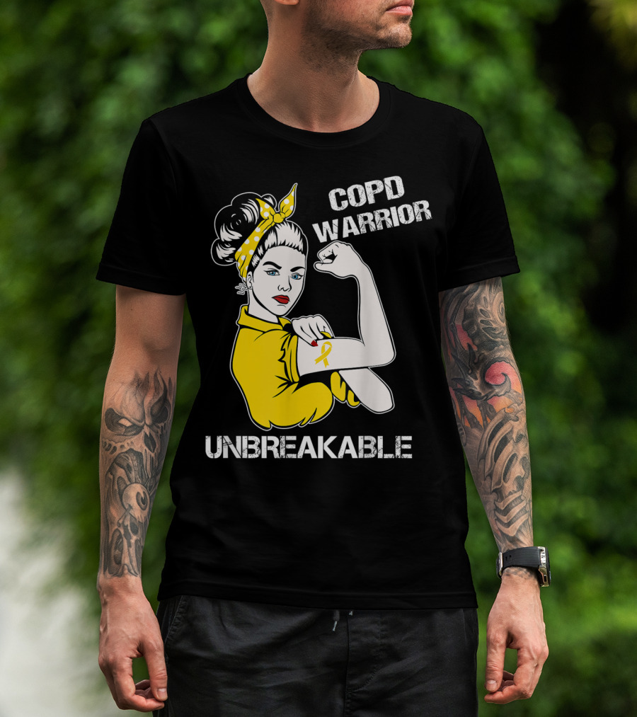 COPD Warrior Unbreakable Rosie Riveter Style Yellow T-Shirt