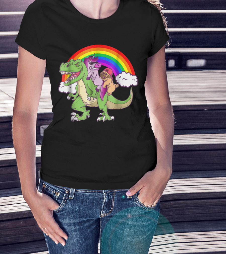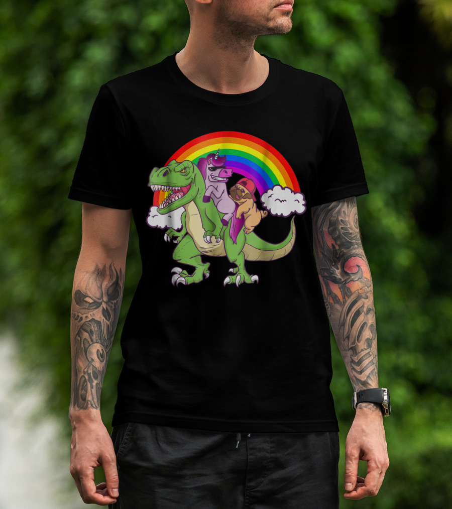 Dinosaur Unicorn Pug Dog Lovers Rainbow Adventure T-Shirt
