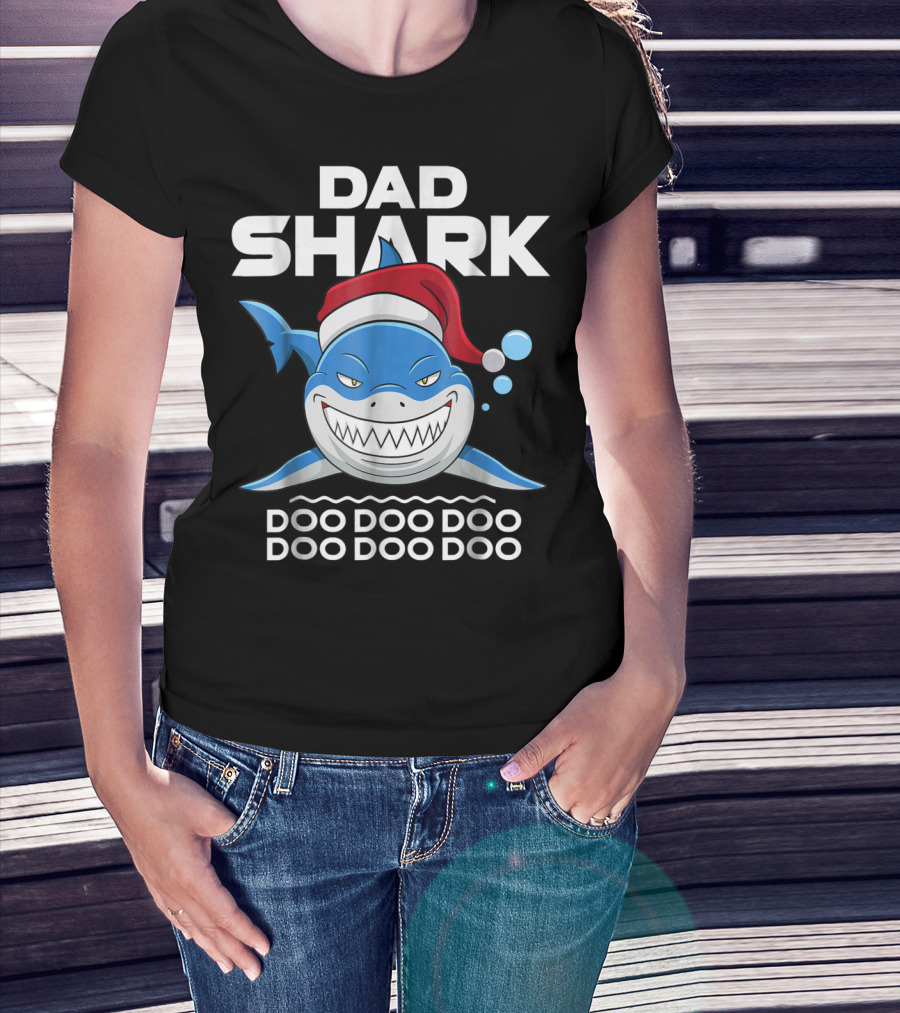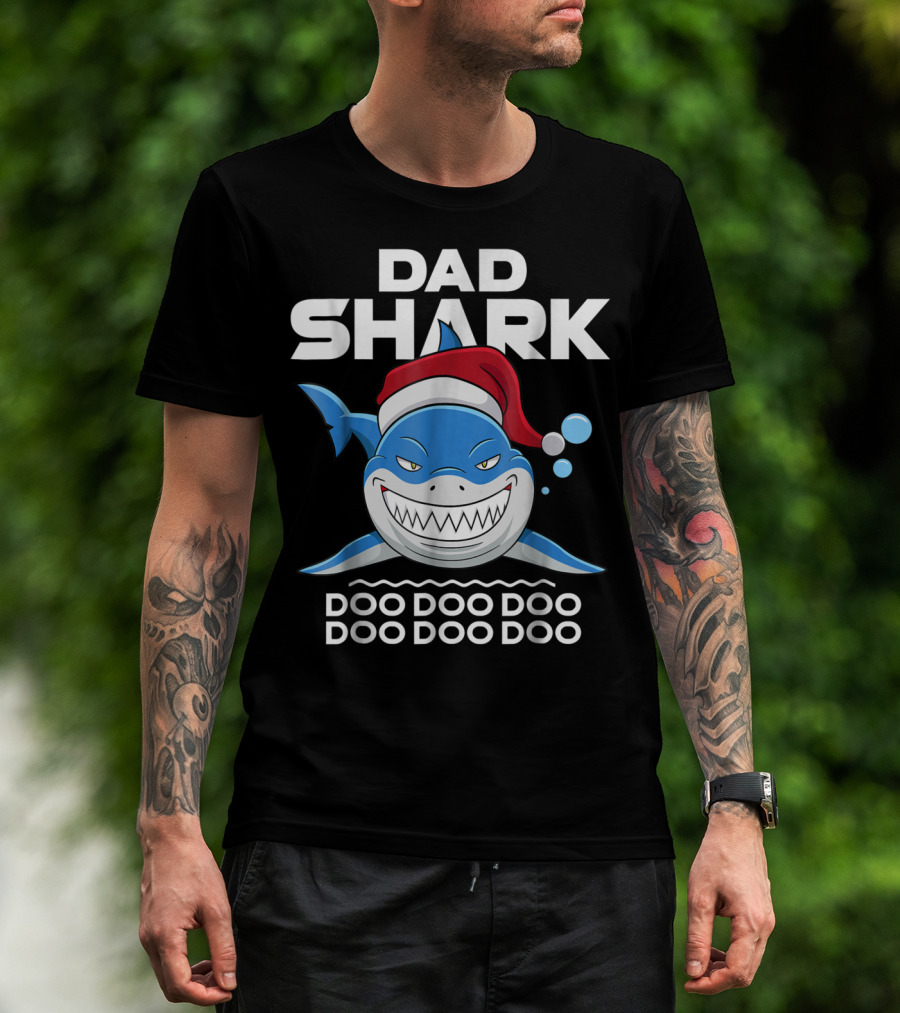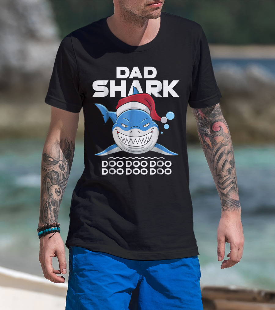 Dad Shark Doo Doo Doo Santa Hat Holiday T-Shirt