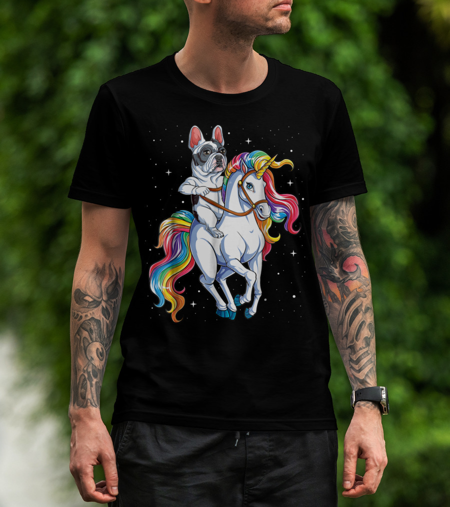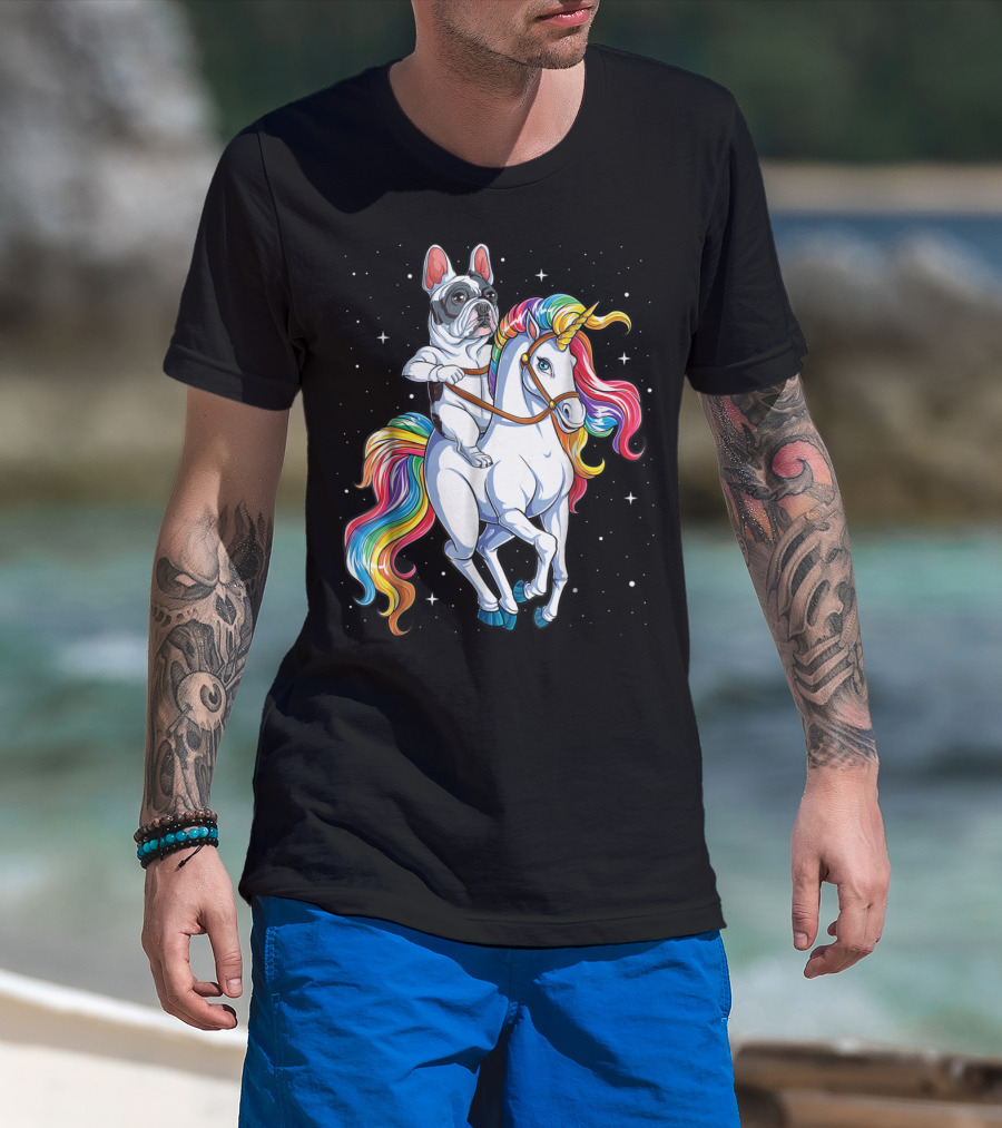 French Bulldog Riding Unicorn In Space Galaxy T-Shirt