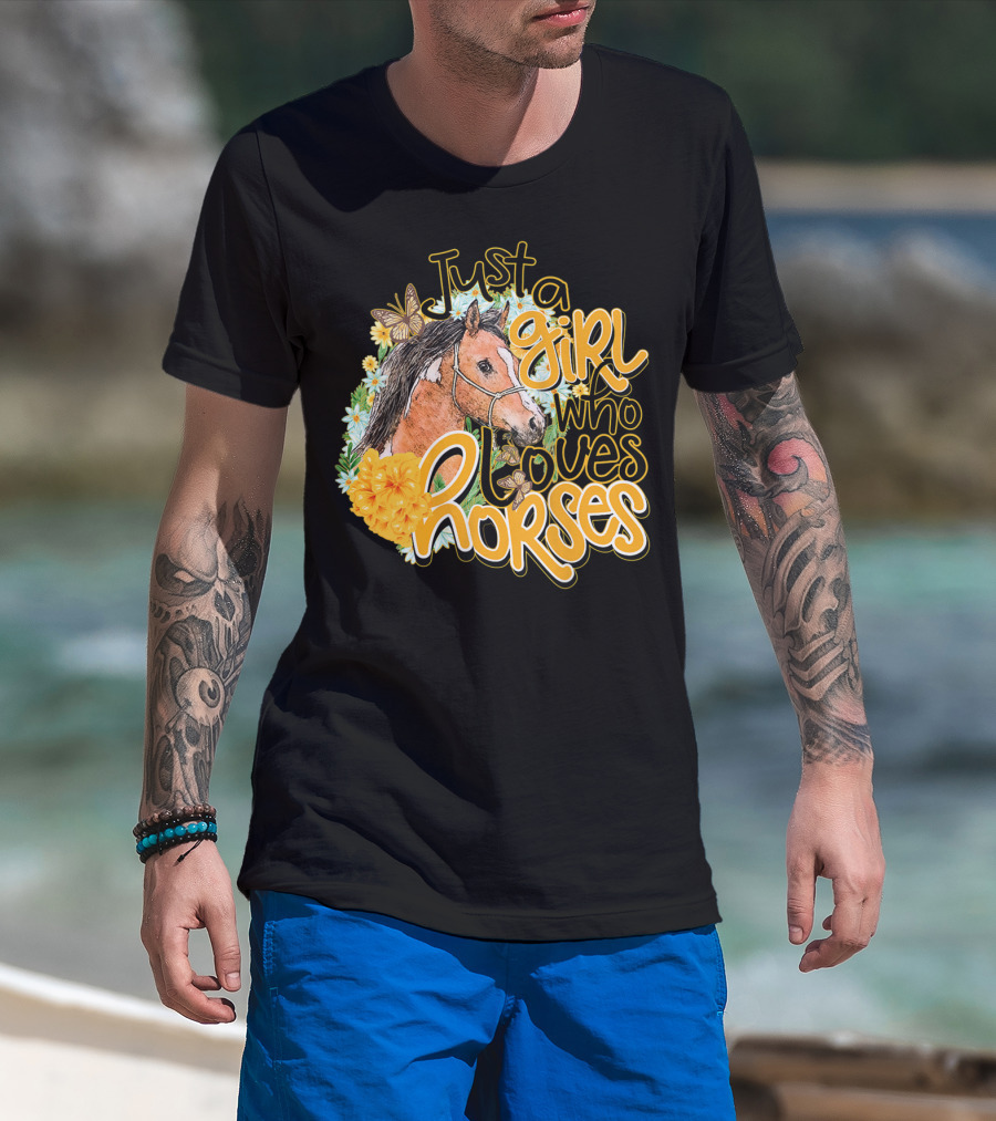 Just A Girl Who Loves Horses Butterfly And Floral T-Shirt