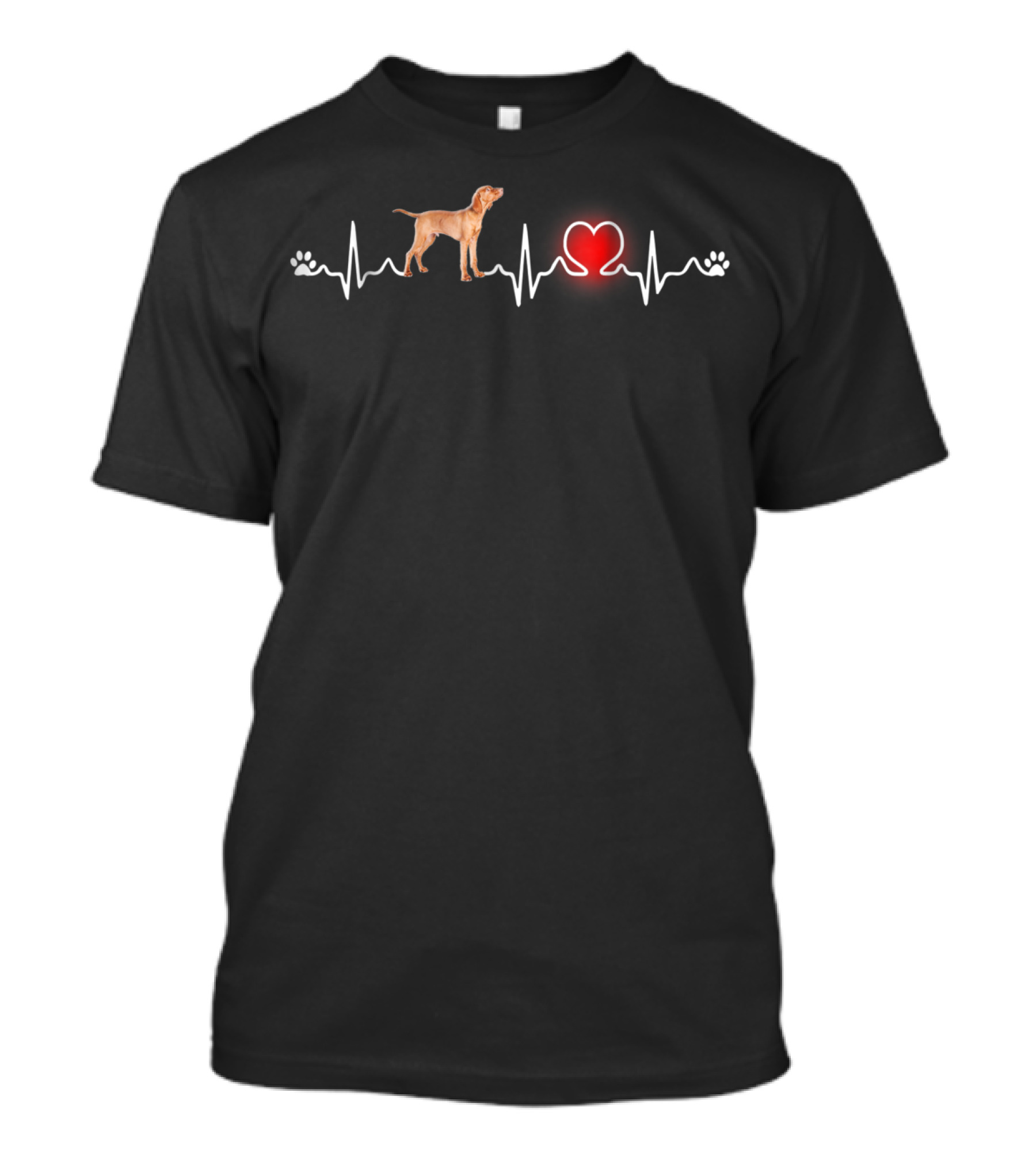 The Vizsla Heartbeat Paw Prints T-shirt is designed for everyday wear and a consistent fit. Fabric is pre-shrunk ring-spun cotton with durable stitching. See the size chart below for exact measurements.