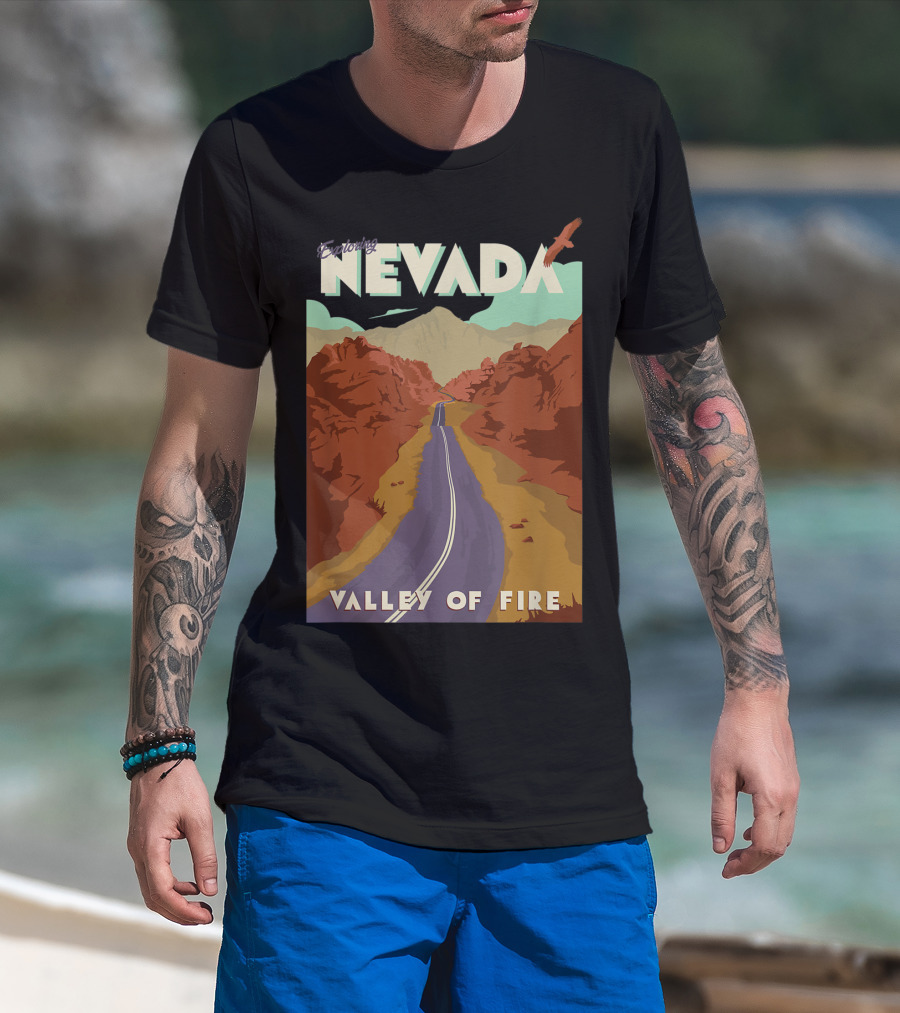 The Entering Nevada Valley of Fire Scenic Road Adventure T-shirt is designed for everyday wear and a consistent fit. Fabric is pre-shrunk ring-spun cotton with durable stitching. See the size chart below for exact measurements.