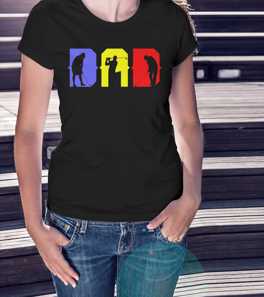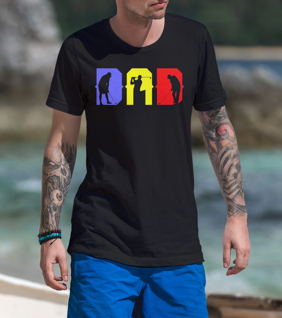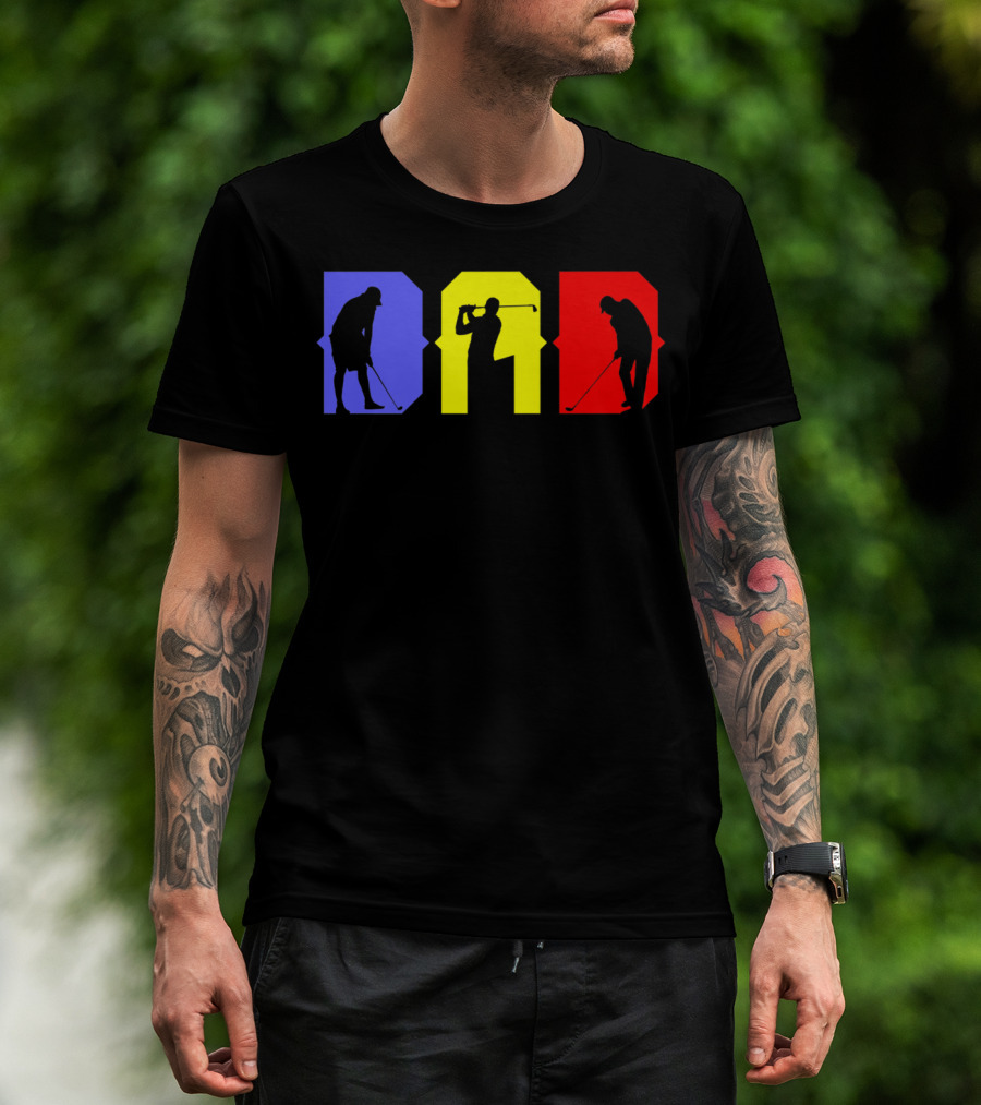 DAD COOL GOLF SILHOUETTE BLUE YELLOW RED T-Shirt