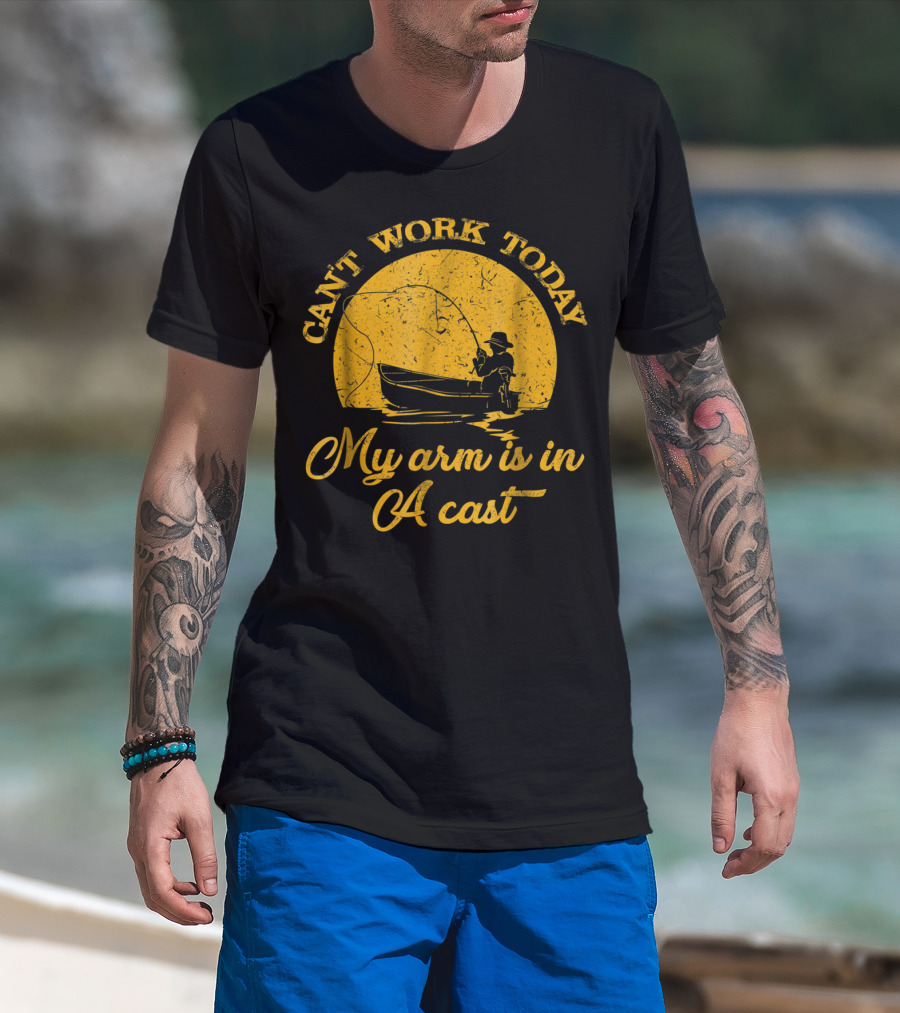 Can't Work Today My Arm Is In A Cast Fishing Boat With Rod T-Shirt