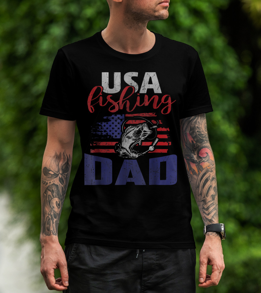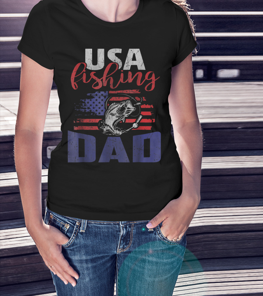 USA Fishing Dad American Flag Bass Fish T-Shirt