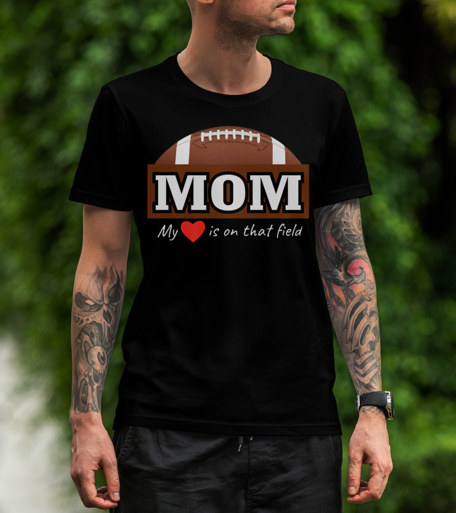 The Mom My Heart is on That Field Football T-shirt is designed for everyday wear and a consistent fit. Fabric is pre-shrunk ring-spun cotton with durable stitching. See the size chart below for exact measurements.