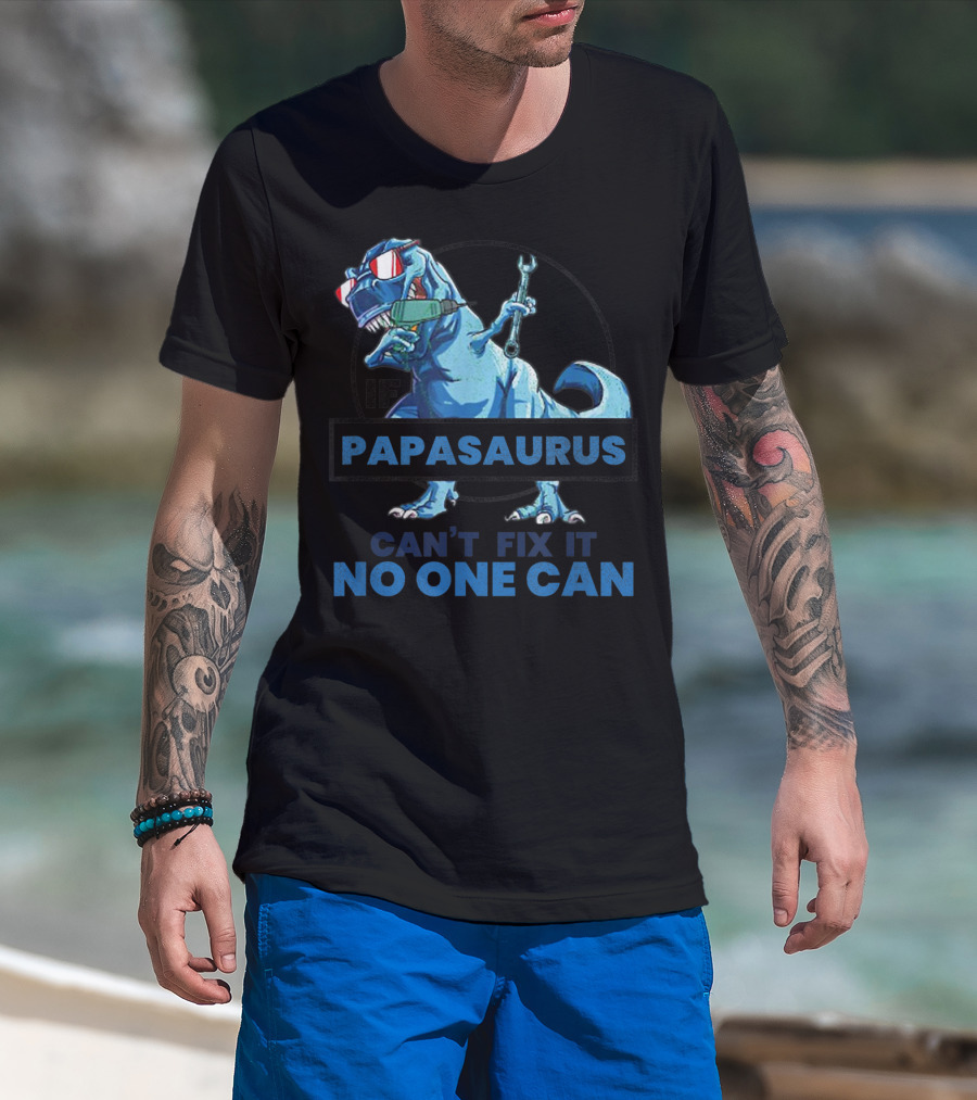 If Papasaurus Can't Fix It No One Can Dinosaur With Wrench And Sunglasses T-Shirt
