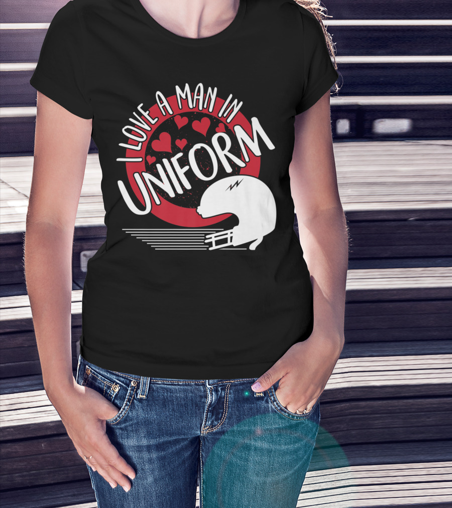 I Love A Man In Uniform Football Player Helmet Hearts Mom35 T-Shirt