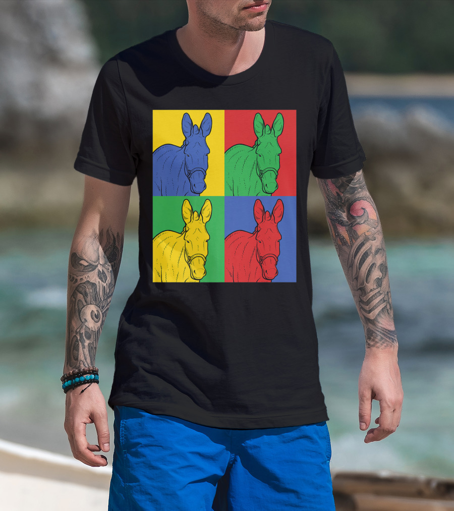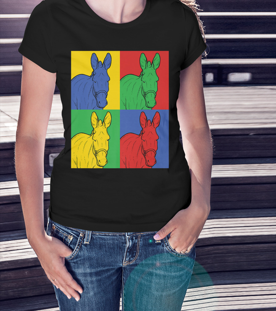 Donkey Horse Pop Art In Bold Warhol Style Quadrants T-Shirt