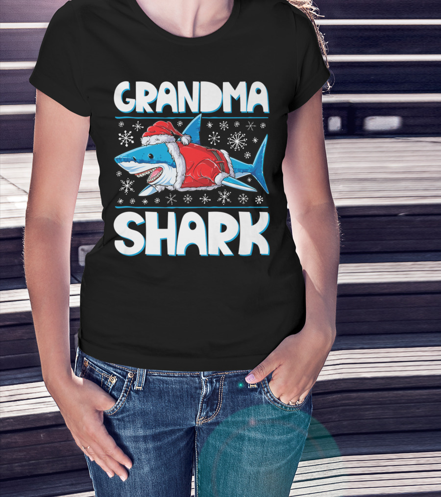 Grandma Shark Santa Christmas Matching Family Snowflakes T-Shirt