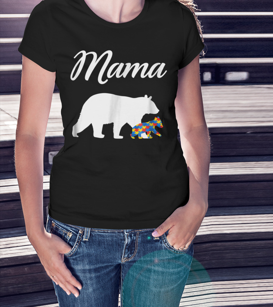 Mama Bear With Puzzle Autism Mom Cute23 T-Shirt