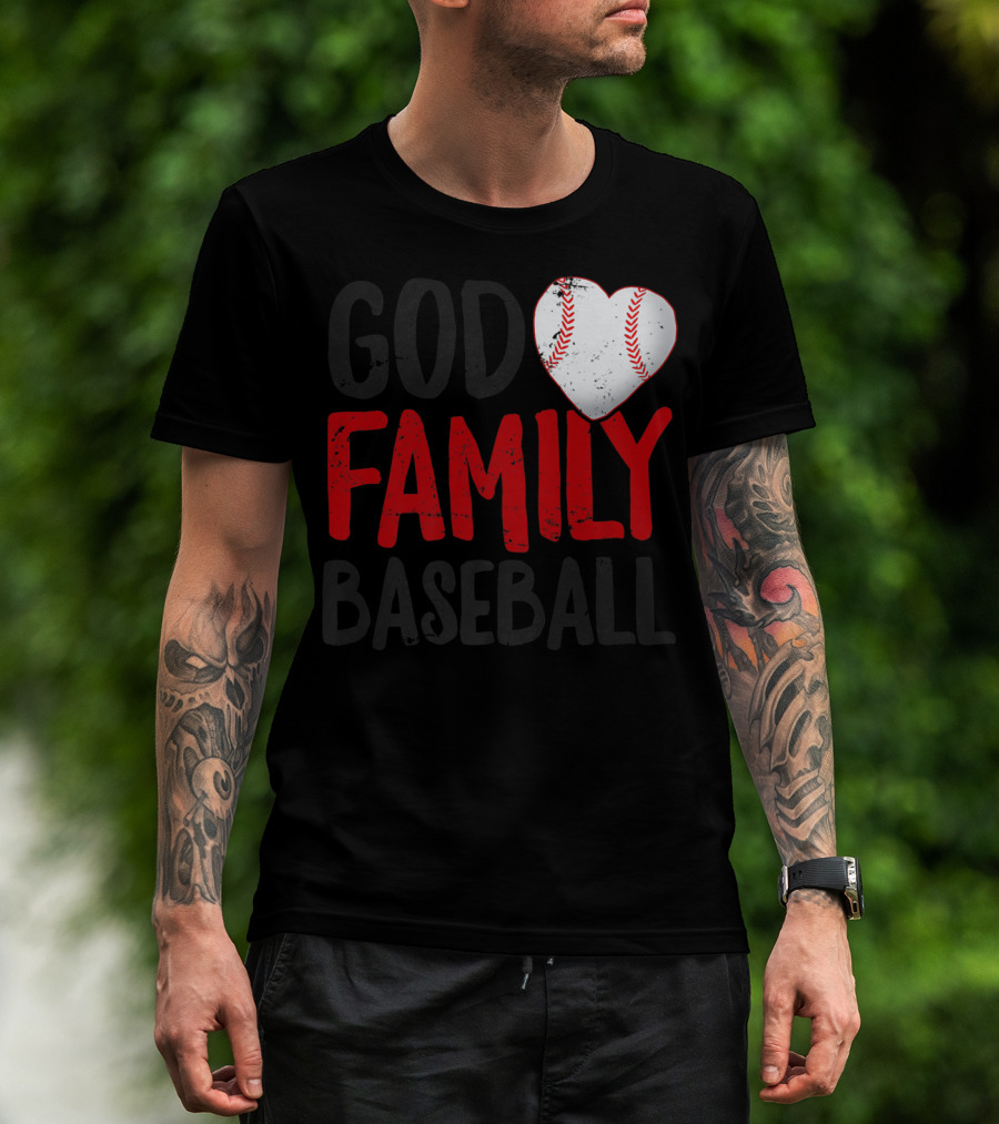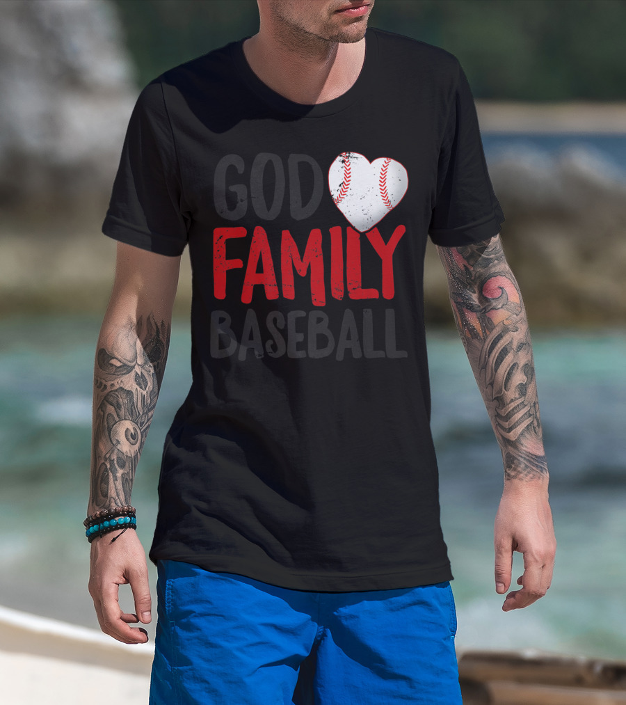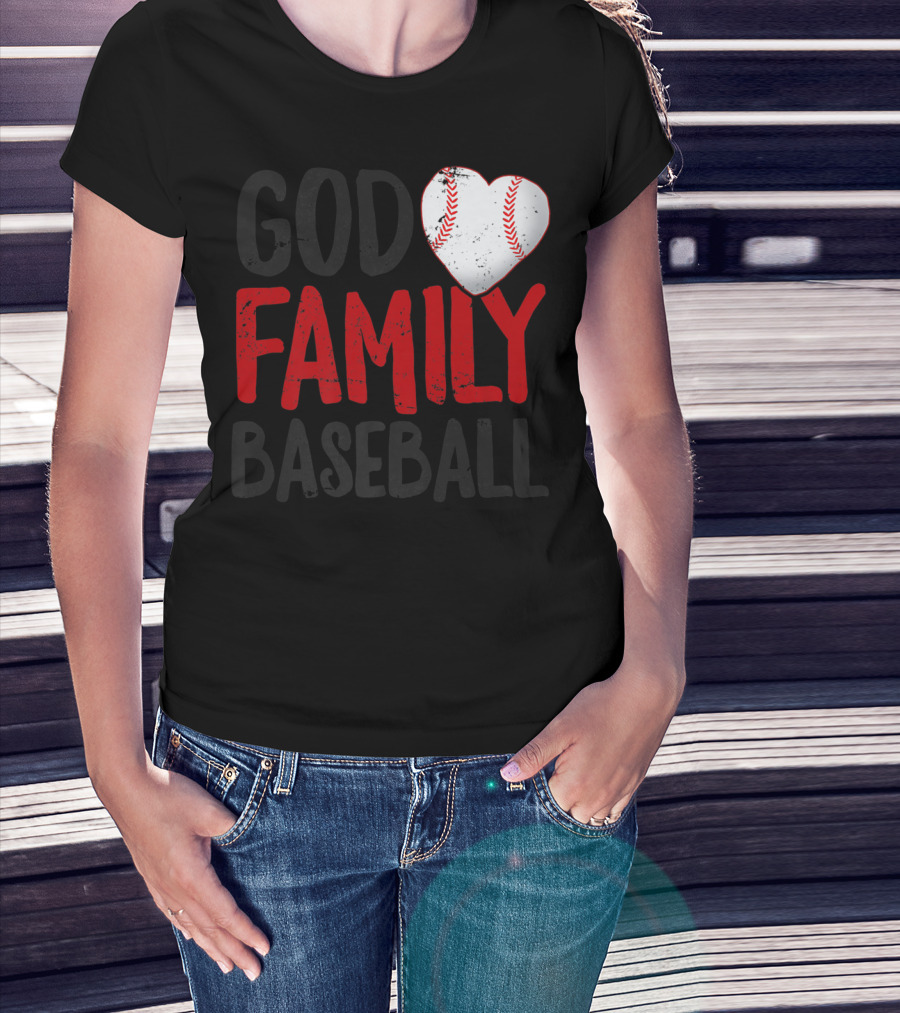 The God Family Baseball Mom Mother Dad Father Coach27 Heart Baseball T-shirt is designed for everyday wear and a consistent fit. Fabric is pre-shrunk ring-spun cotton with durable stitching. See the size chart below for exact measurements.