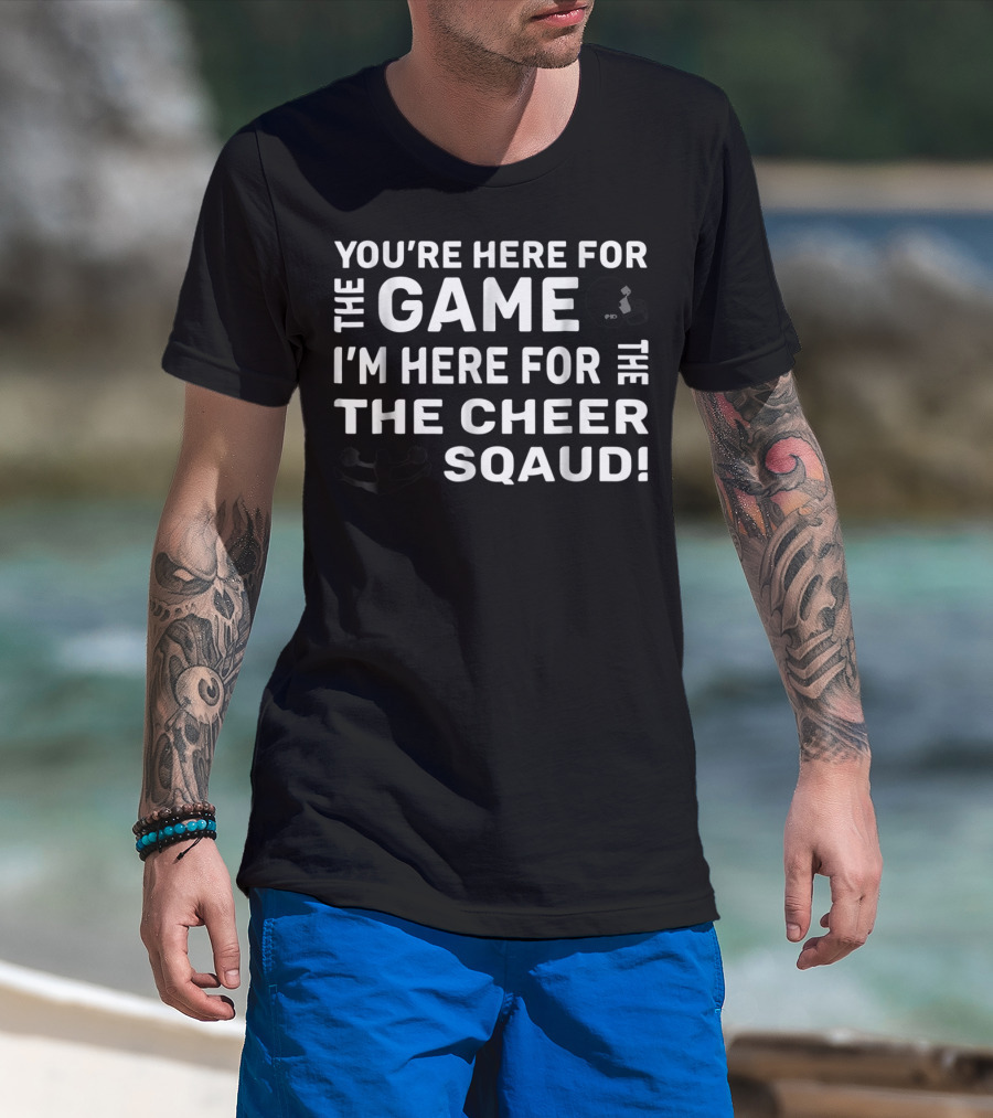 You're Here For The Game I'm Here For The Cheer Squad Funny Cheerleading Mom T-Shirt