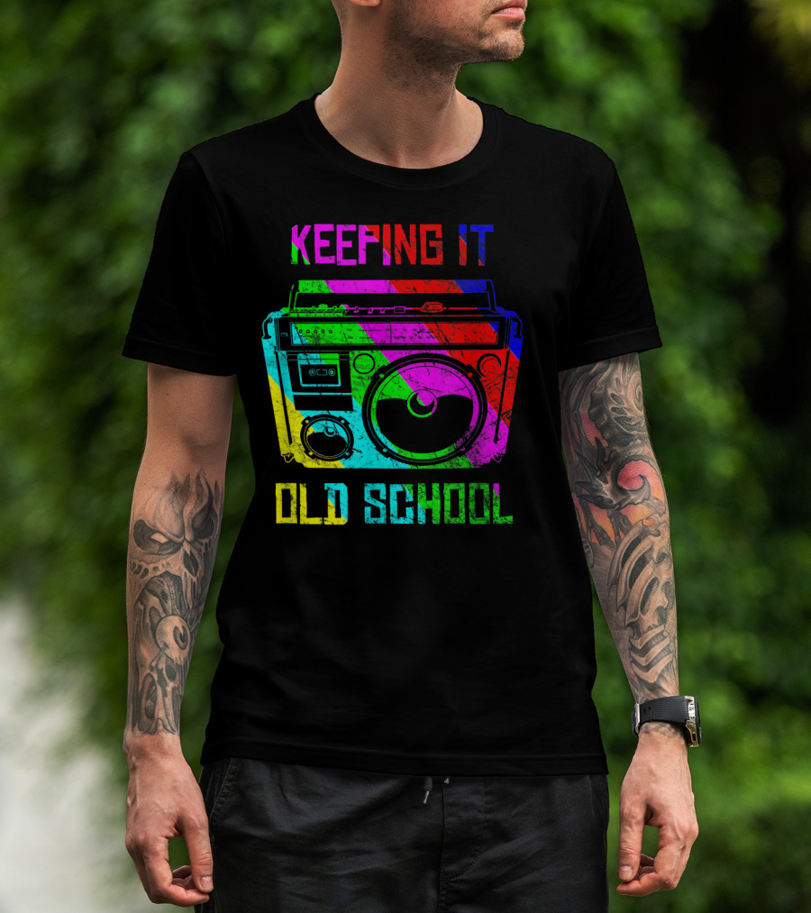 Keeping It Old School Boombox Retro Rainbow 80s Vibes T-Shirt