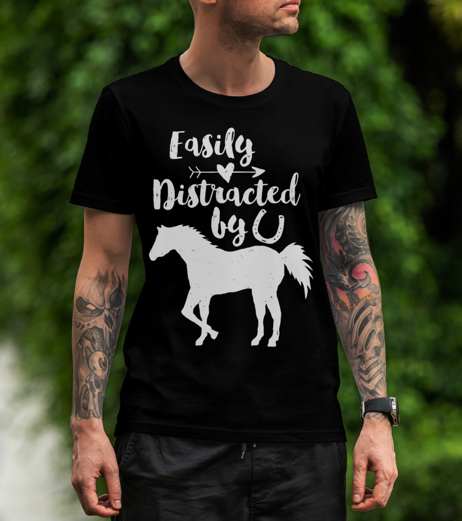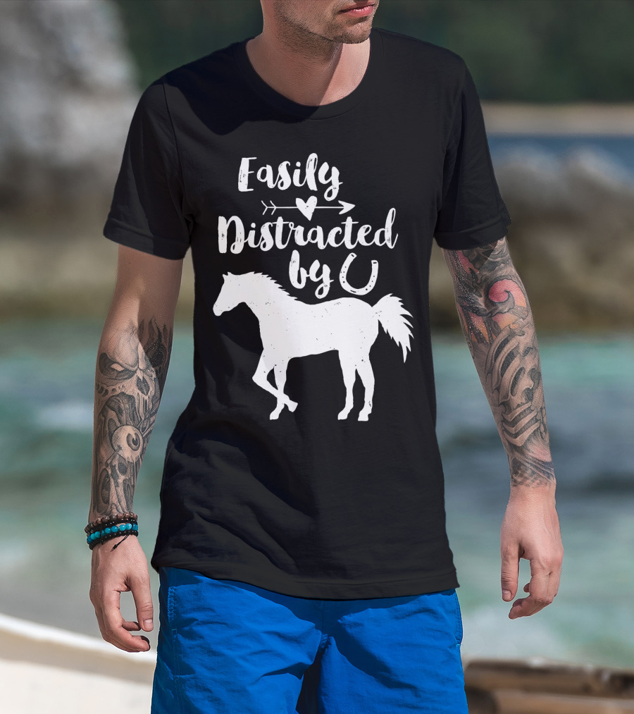 Easily Distracted By Horses With Arrow Heart And Horseshoe T-Shirt