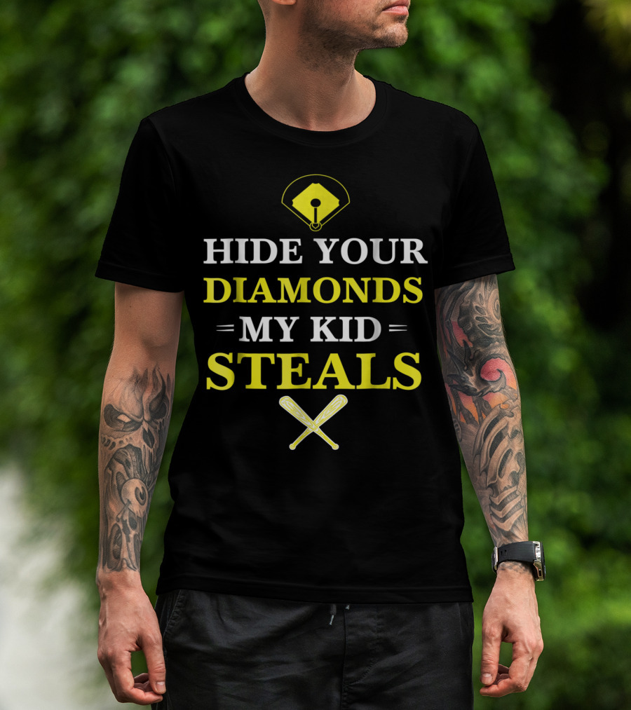 Hide Your Diamonds My Kid Steals Baseball Bat Field T-Shirt