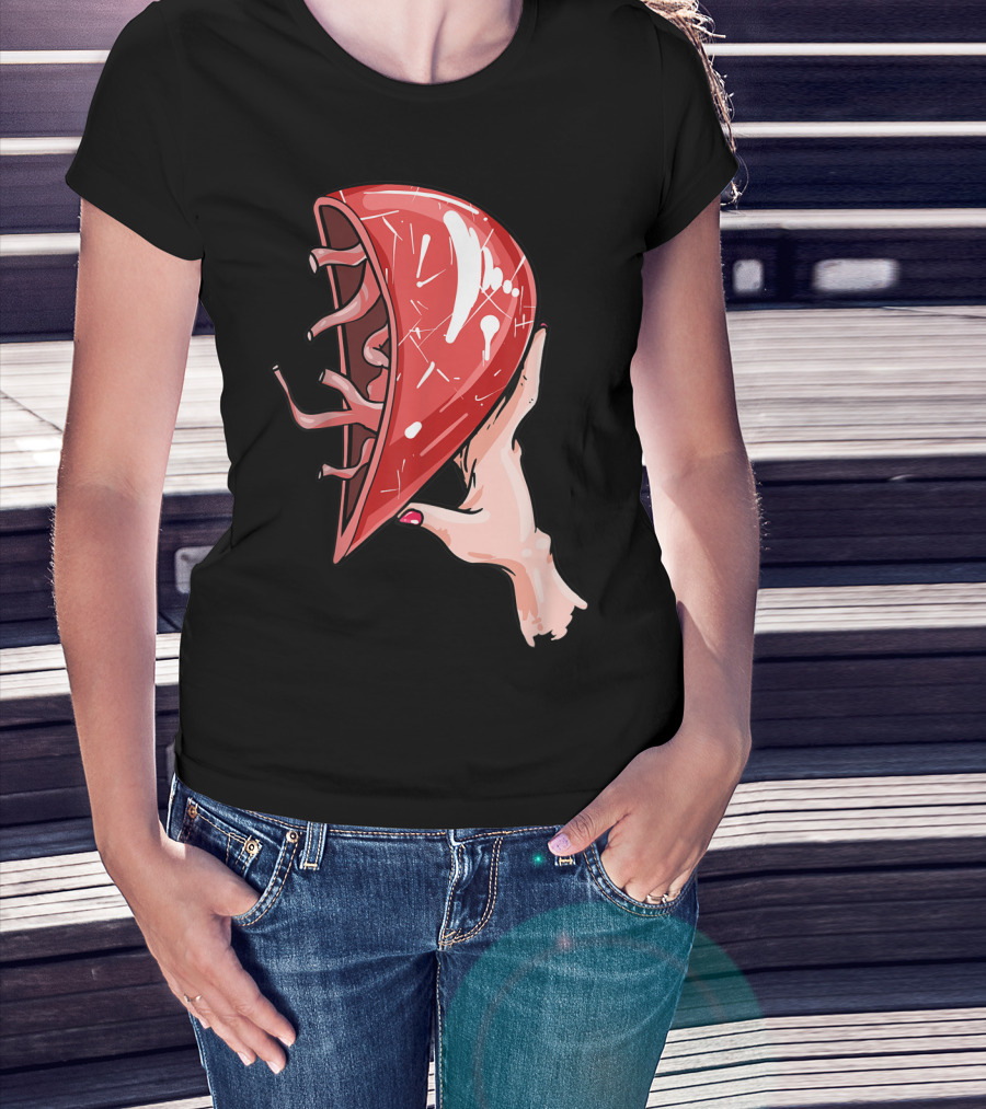 Hand Holding Semi-Open Anatomical Heart T-Shirt