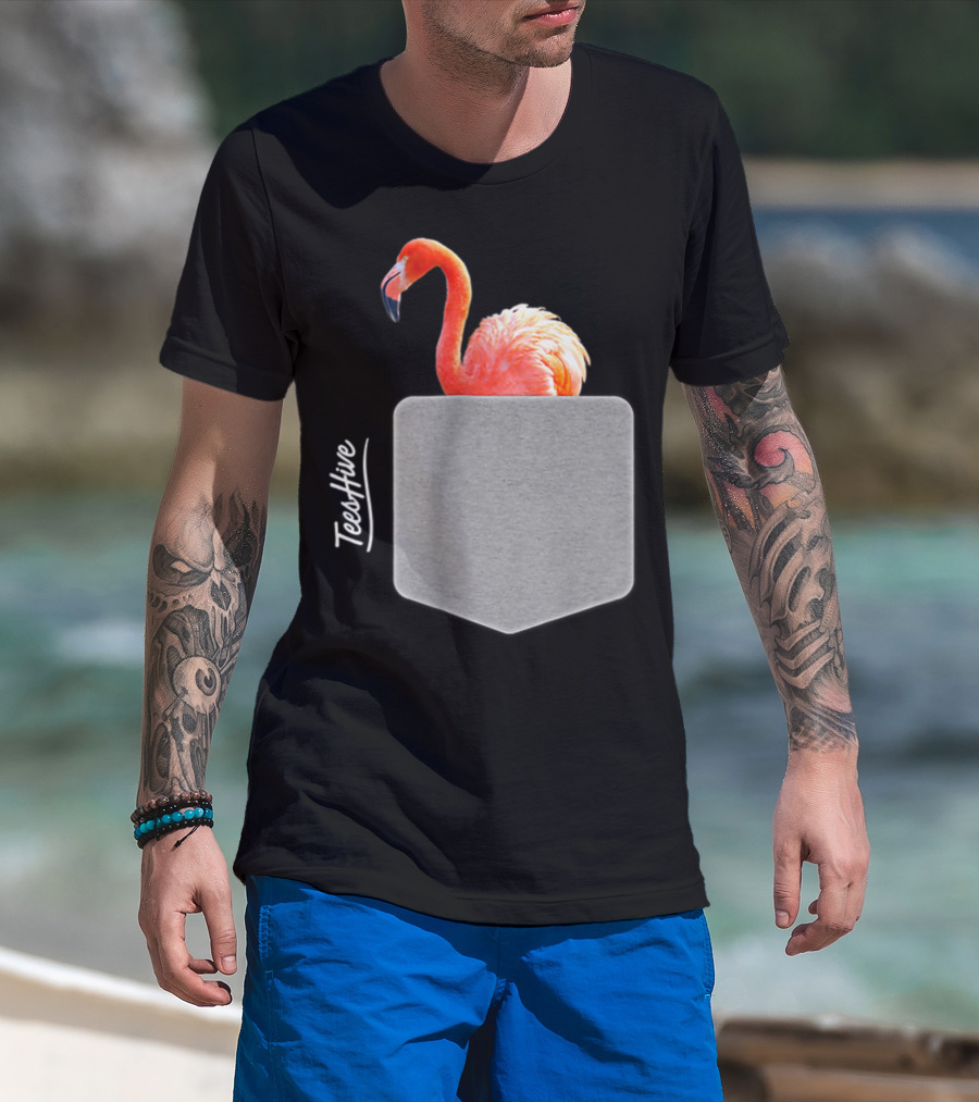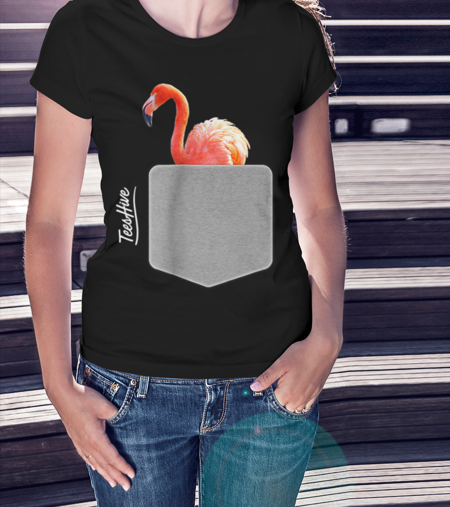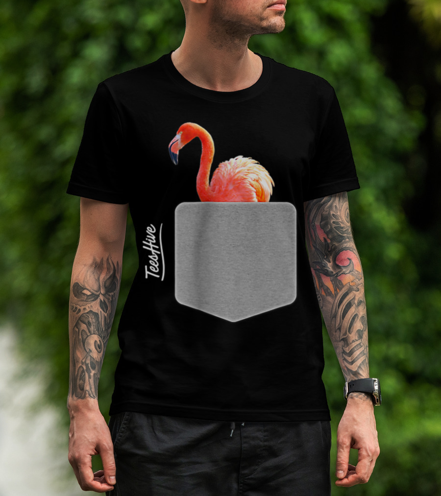 TeesHive Funny Flamingo Pocket Flamingo Mom Cute Flamingo Lover T-Shirt