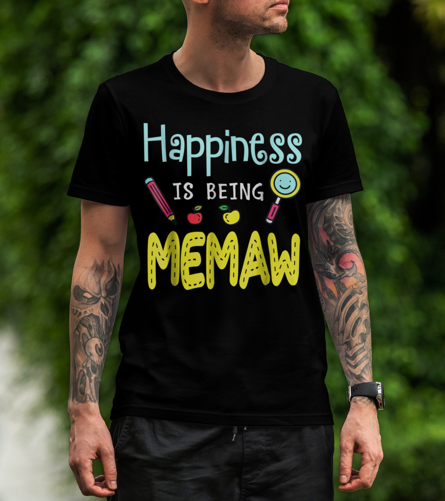 Happiness Is Being Memaw Mom Mother Pencil Apple Magnifying Glass T-Shirt
