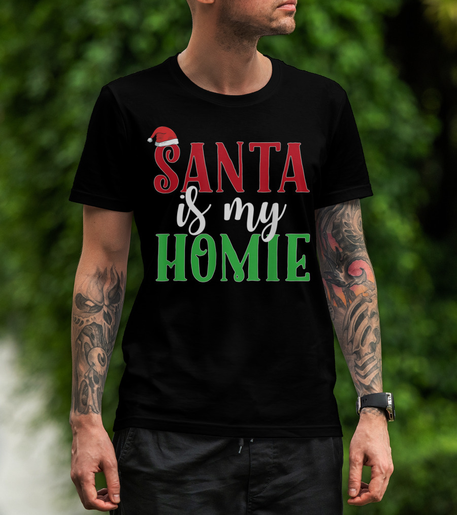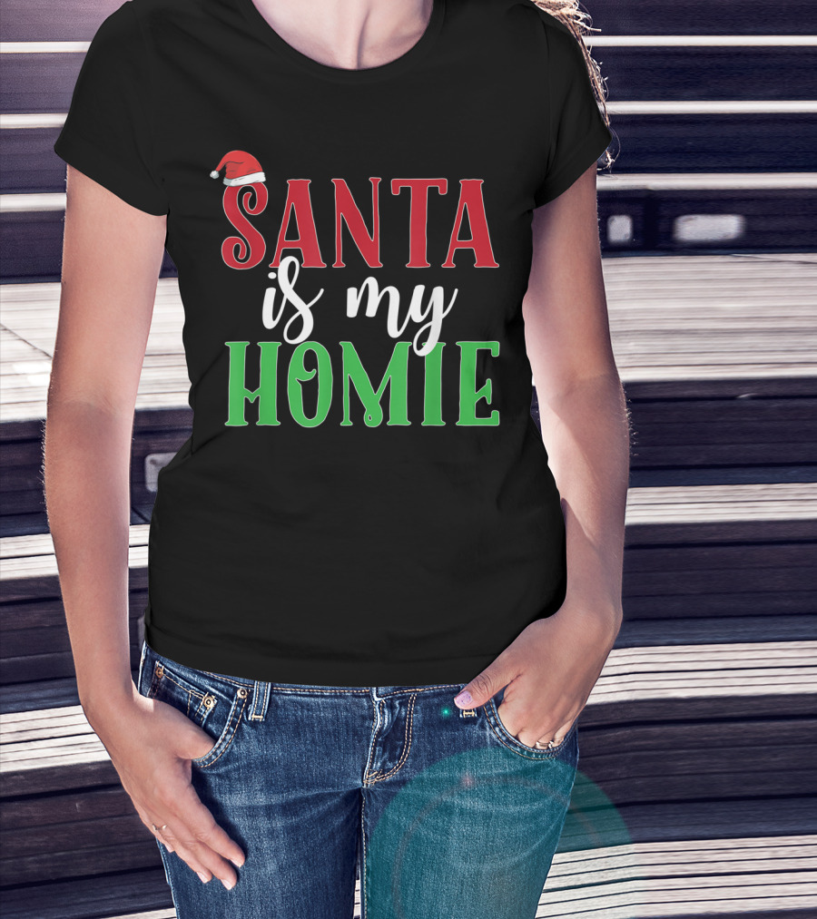 Santa Is My Homie Sweet Santa Hat Christmas T-Shirt
