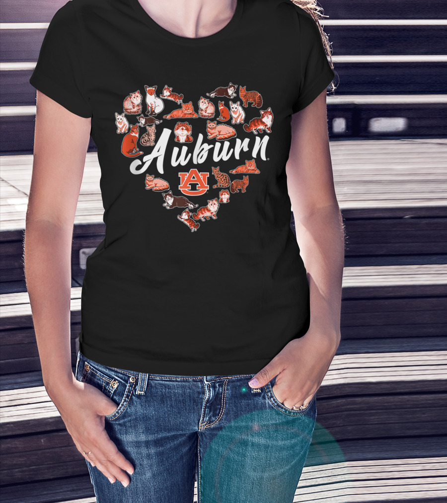 Auburn Tigers Heart Shaped Cat Pattern Game Day Tailgate T-Shirt