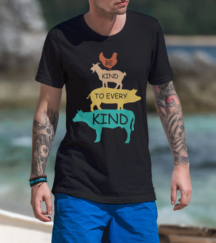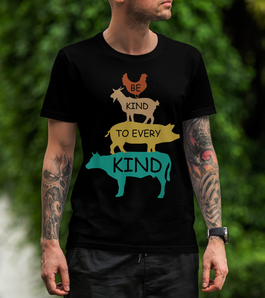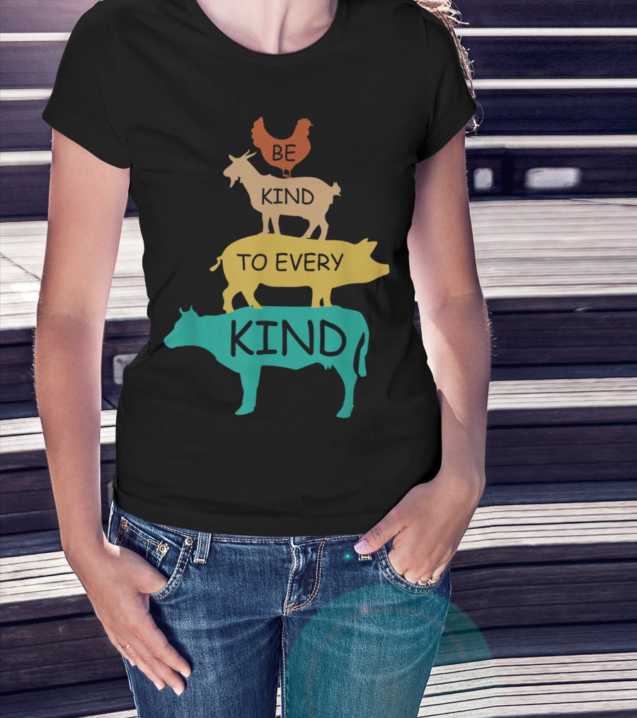 Be Kind To Every Kind Vintage Vegetarian Animal Stack T-Shirt