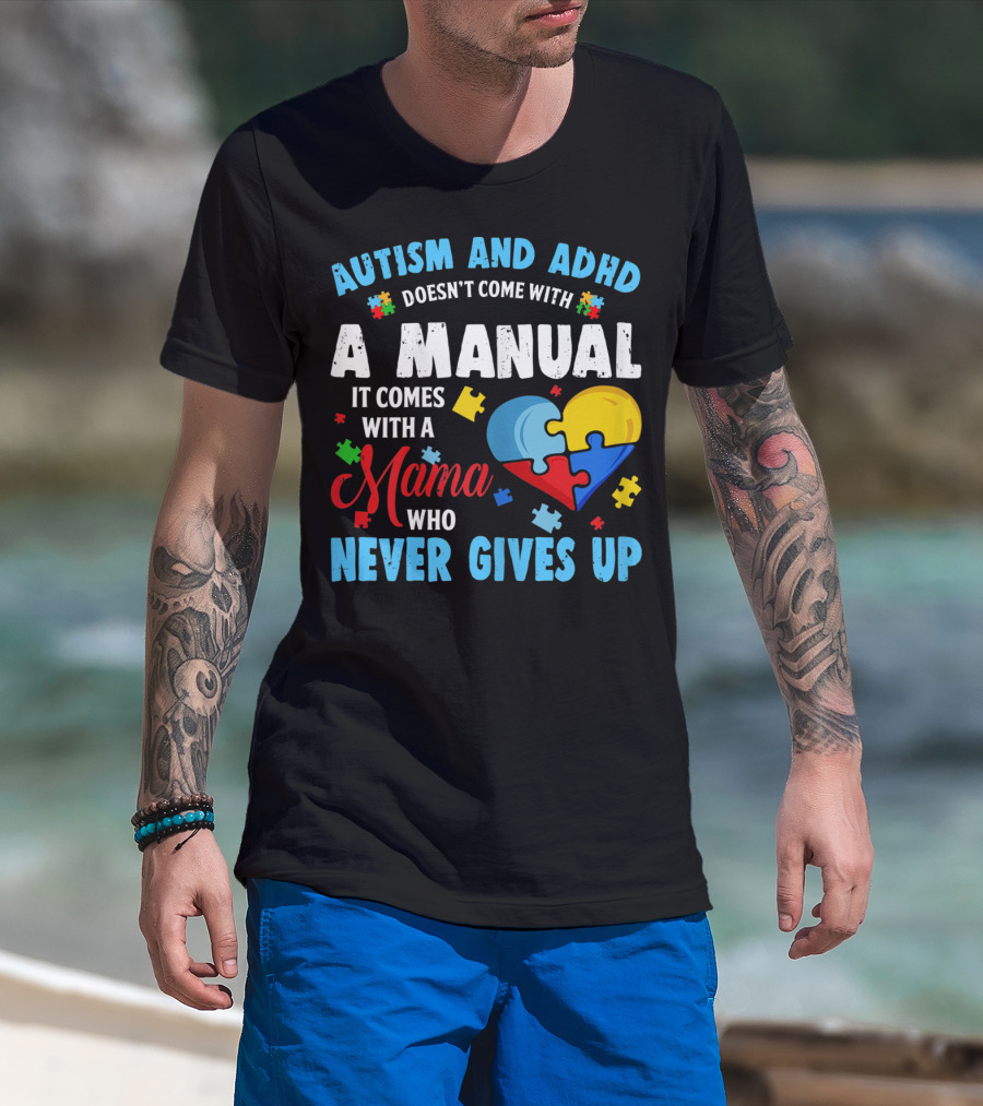 Autism ADHD Doesn't Come With A Manual It Comes With A Mama Who Never Gives Up T-Shirt