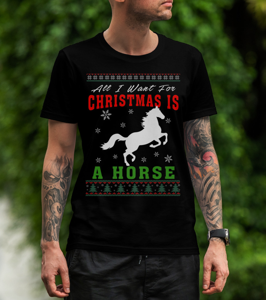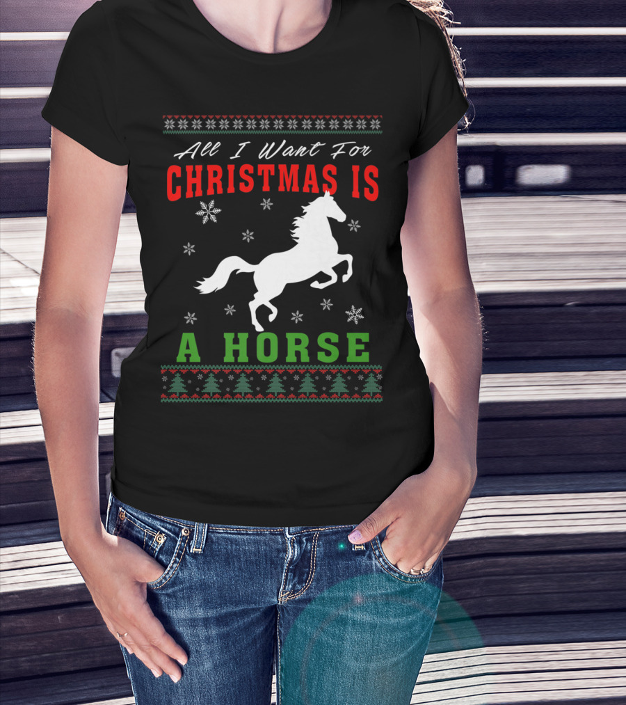 All I Want For Christmas Is A Horse Snowflakes Forest T-Shirt