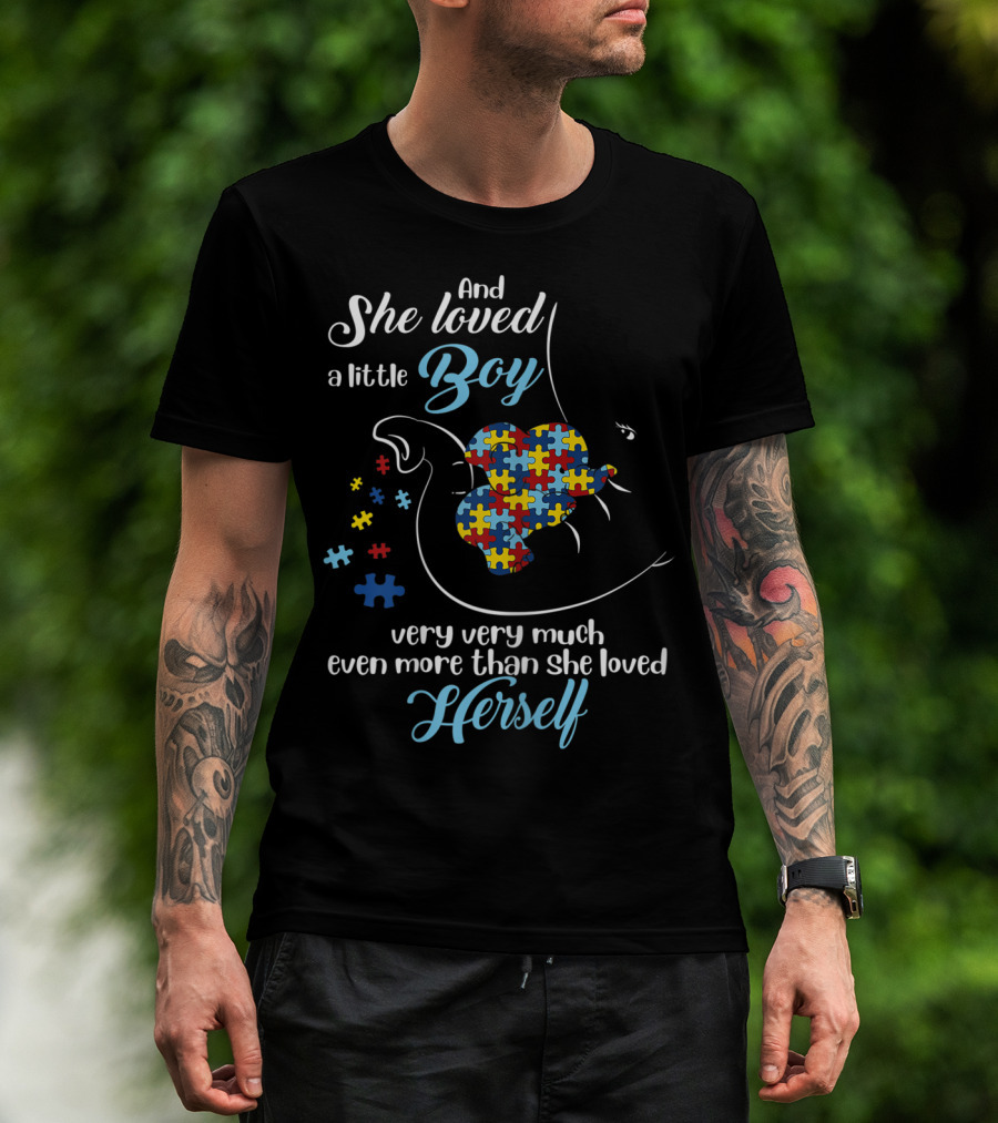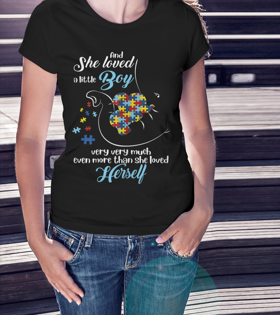 She Loved A Little Boy Very Very Much Autism Awareness Elephant Puzzle Pieces T-Shirt