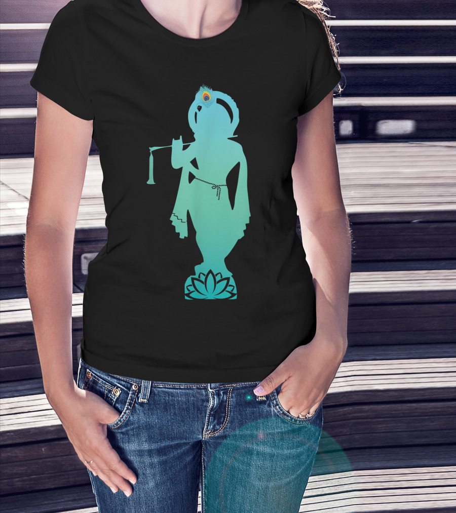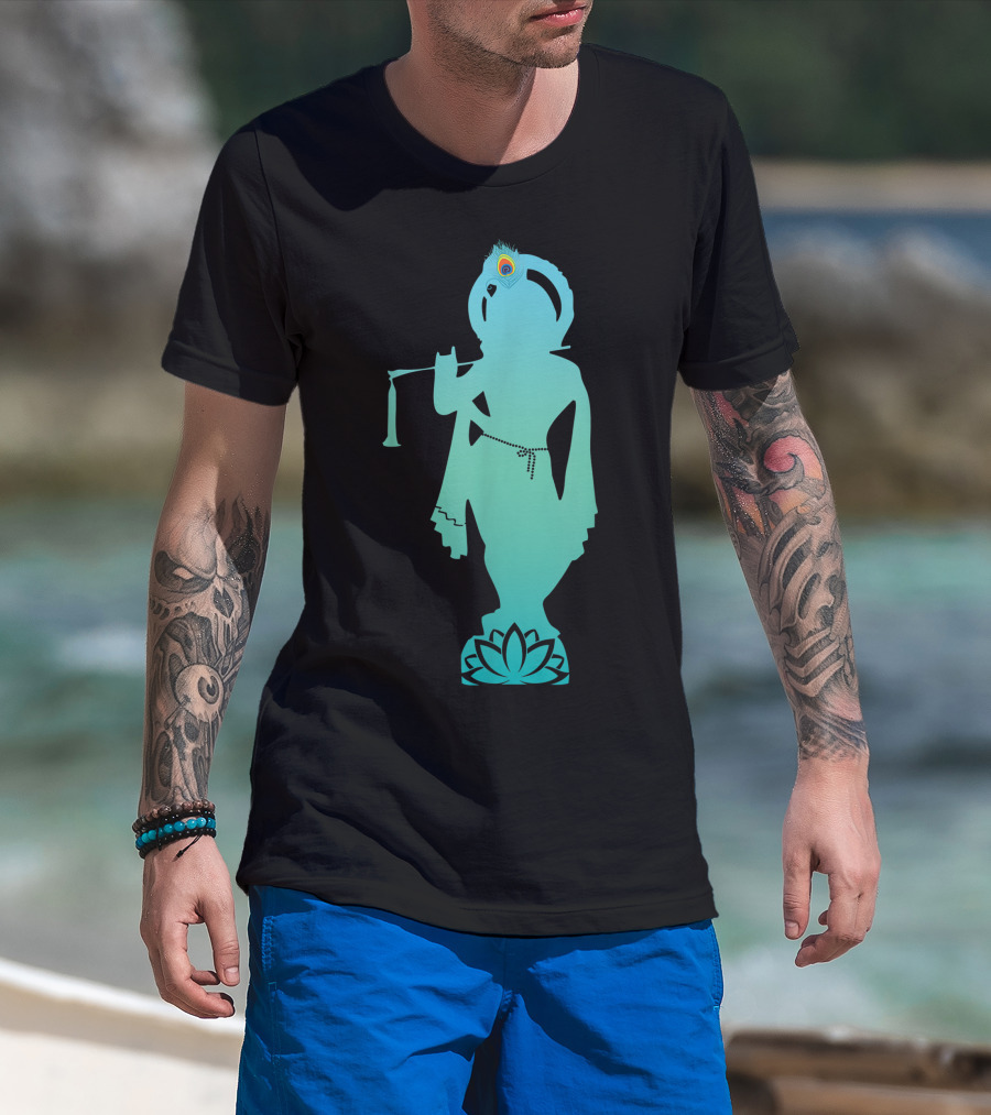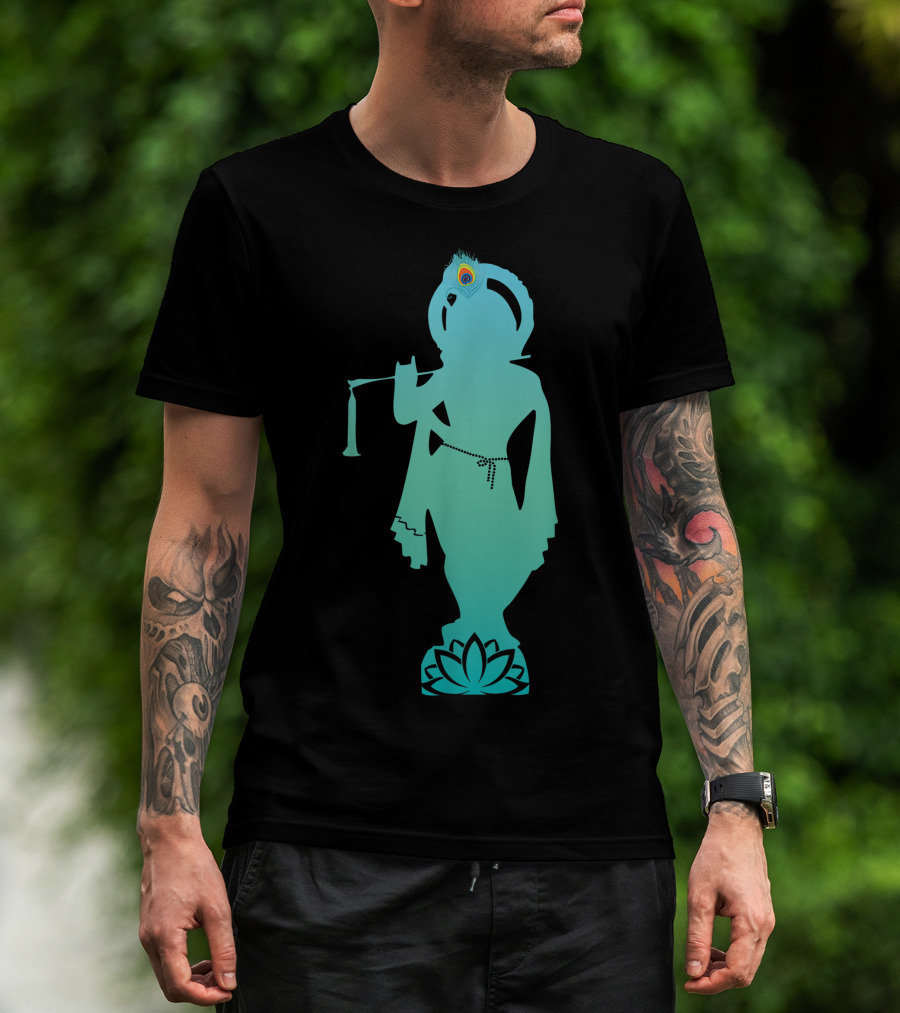 Divine Glory Lord Krishna Flute Silhouette With Peacock Feather And Lotus T-Shirt
