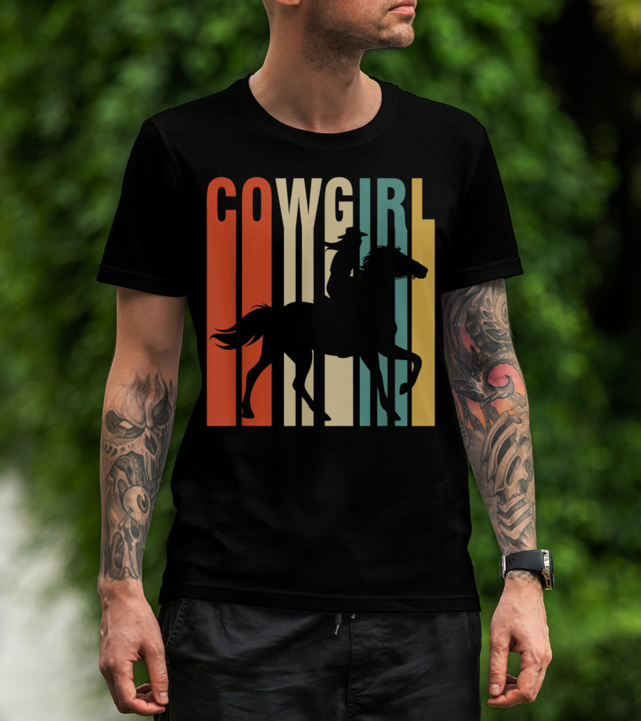 The Cowgirl Silhouette Horse Rider T-shirt is designed for everyday wear and a consistent fit. Fabric is pre-shrunk ring-spun cotton with durable stitching. See the size chart below for exact measurements.